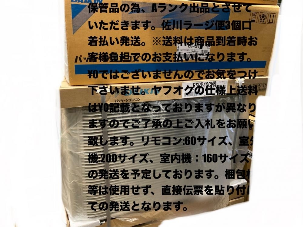 a ■商品状態 同じ商品を複数点お買取りしたため画像は使い回しとなります。予めご了承ください。 ※リモコンBRC7N18付 保管品の為、Aランク出品とさせていただきます。佐川ラージ便3個口着払い発送。※送料は商品到着時お客様負担でのお支払いになります。¥0ではございませんのでお気をつけ下さいませ。ヤフオクの仕様上送料は¥0記載となっておりますが異なりますのでご了承の上ご入札をお願い致します。リモコン:60サイズ、室外機:200サイズ、室内機:160サイズでの発送を予定しております。梱包材等は使用せず、直接伝票を貼り付けての発送となります。 未使用品ですが、開封済み・長期保管品等の理由によりランクを一つ下げAランクとして出品致します。 未使用品の為、動作確認等は行っておりません。 店頭買取後、店頭にて展示販売も同時にしておりますため、傷汚れ等が増えている場合も御座います。 ■付属品 写真が全てになります ■管理番号 240020077551 |