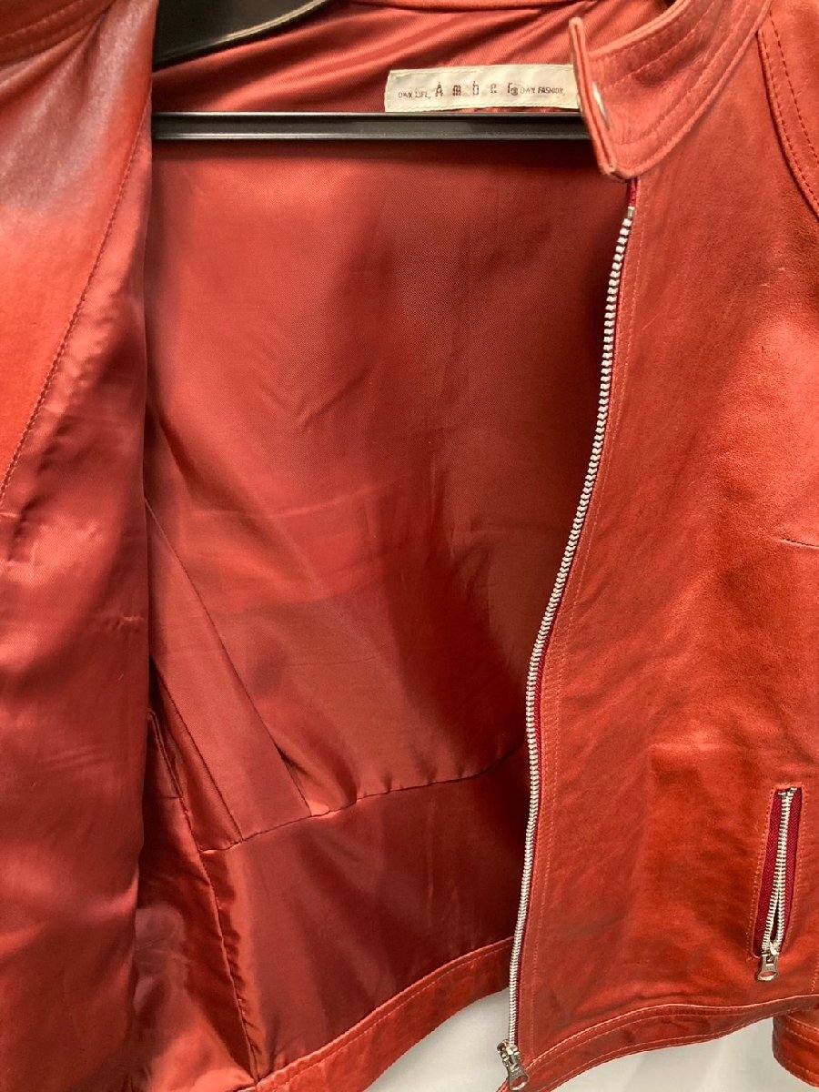 ◆Amber アンバー レザージャケット 牛革 赤 Mサイズ アウター 中古◆12490