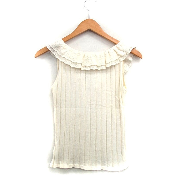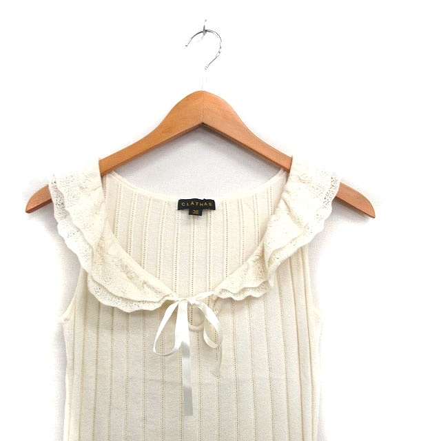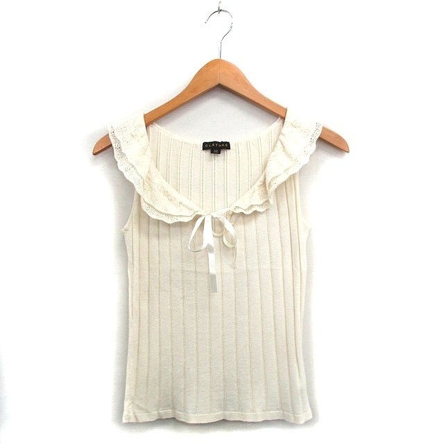 クレイサス CLATHAS ニット セーター ノースリーブ フリル リボン コットン 38 アイボリー 白 /KT33 レディース