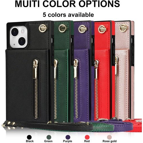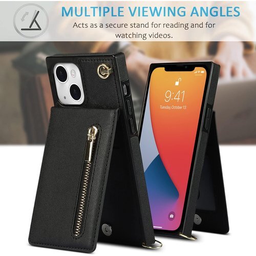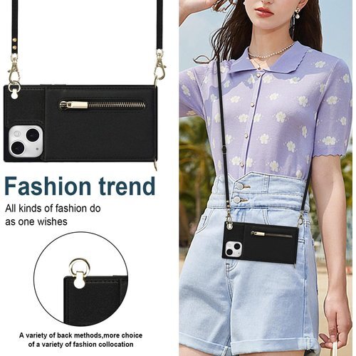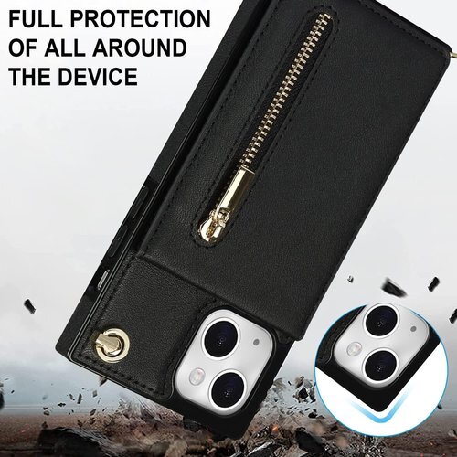 iPhone 13 ケース縄掛け iPhone13 ケース手帳型 iPhone 13 財布型ケース 肩掛け ストラップ付き 背面カバー 携帯カバー Pelanty PUレザー ICカード収納 お札入れ小銭入れ 磁気ボタン スタンド機能 サイドジッパー 多機能 アイフォン13 スマホケース 耐衝撃 上下開-ブラック 198