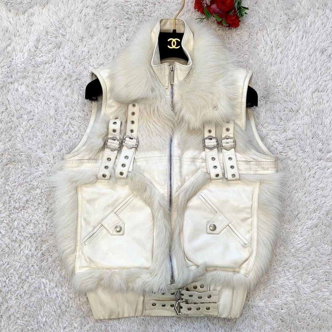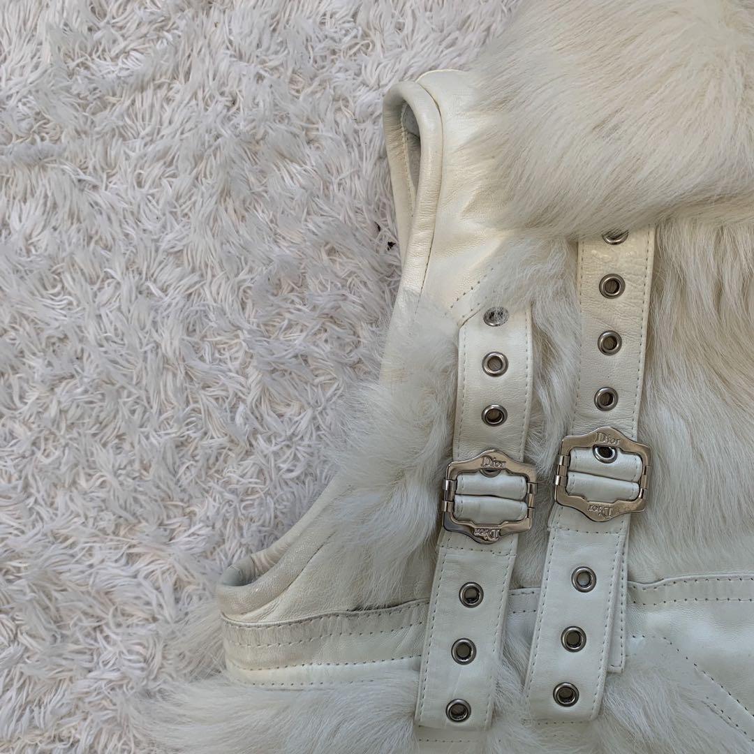 クリスチャンディオール Christian Dior ガリアーノ期 ファージャケット ラムスキン ラビットファー ベストジャケット ベルト ストラップ