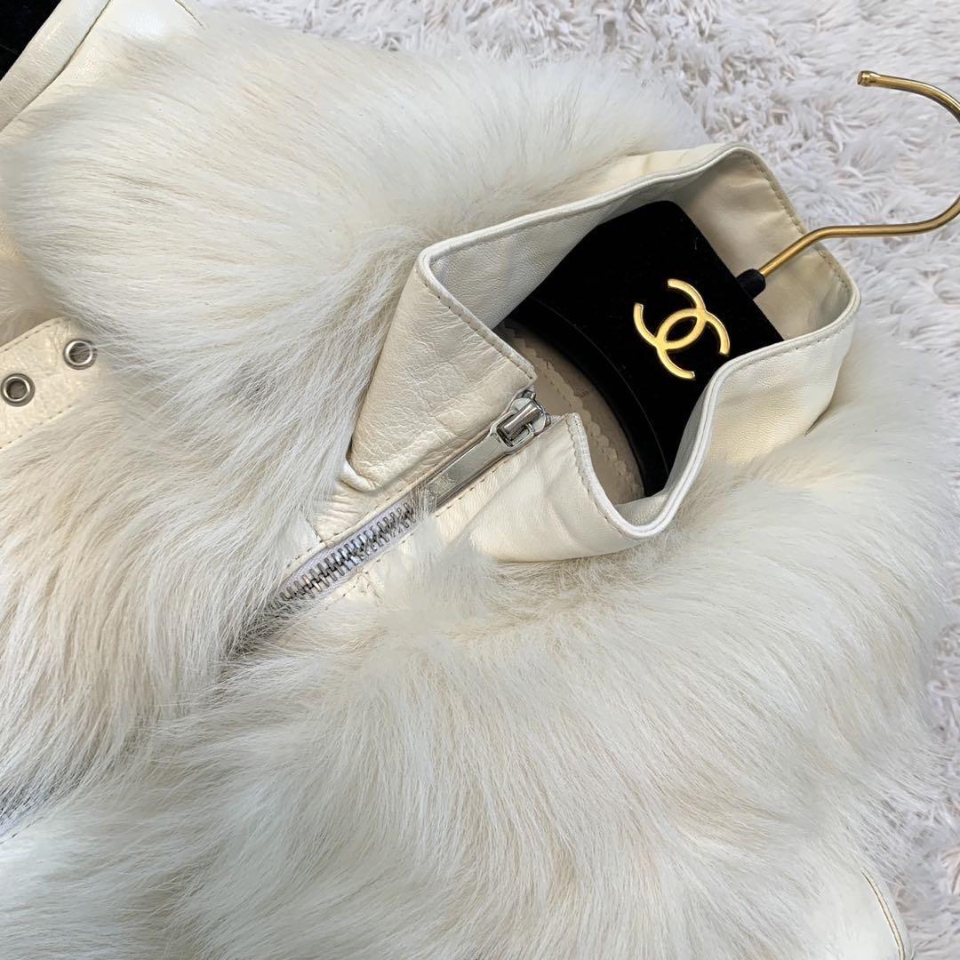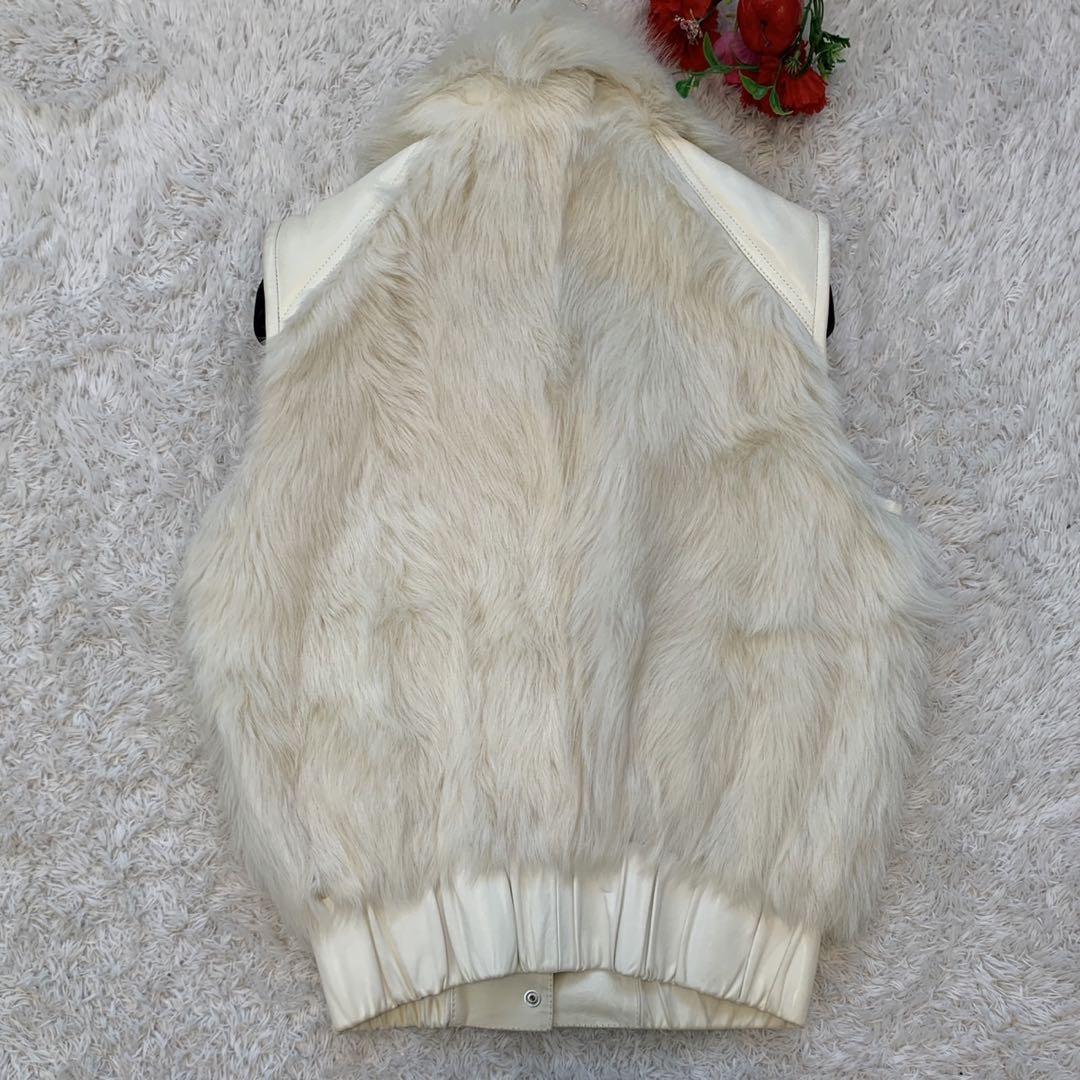 グリーンのモデルで海外で同じく中古の商品で90万で成約しておりましたのでホワイトのコレクションと同モデルのこちらはさらに貴重かと思われます。ジャケット裏地に毛玉と汚れ、レザーに若干スレや黄ばみ見られますがファー抜けは見られずまだまだ気持ちよくご利用いただけるかと思います。