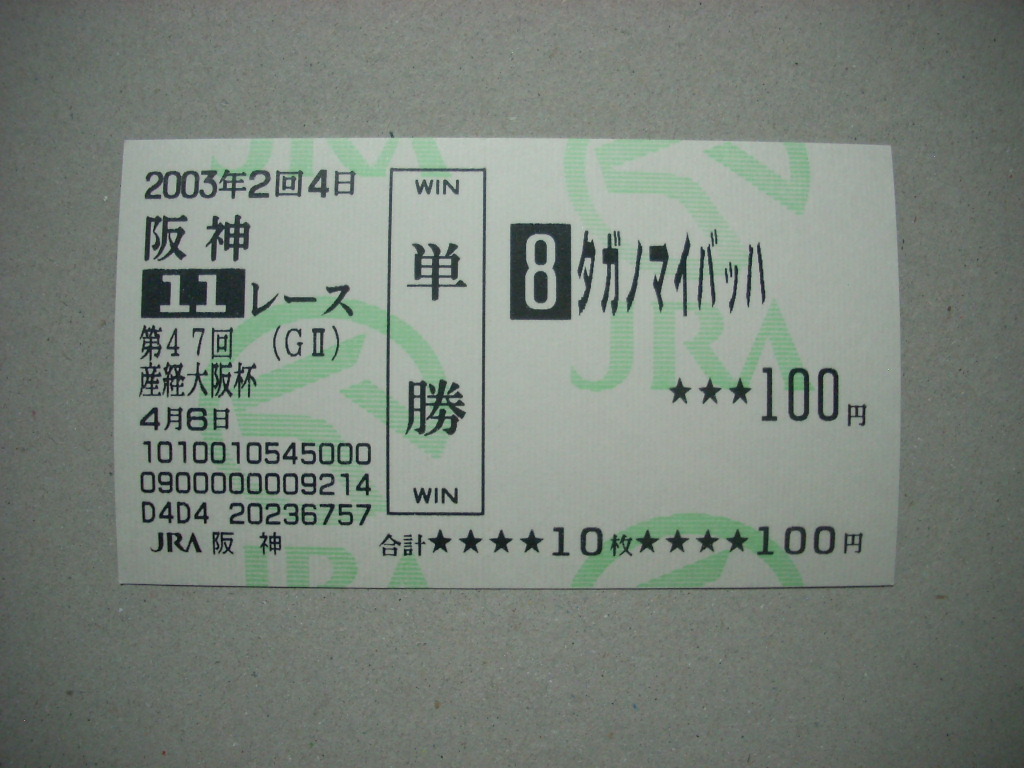 ■タガノマイバッハ:第47回産経大阪杯(GⅡ) 現地的中。代理出品。年数が経っているので、神経質な方はご遠慮下さい。ノークレーム・ノーリターンでお願い致します。 発送はミニレター・定形(普通郵便)を予定しています。