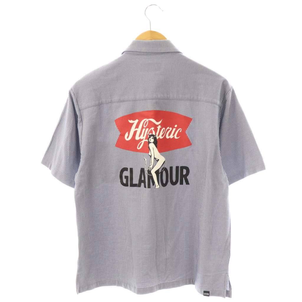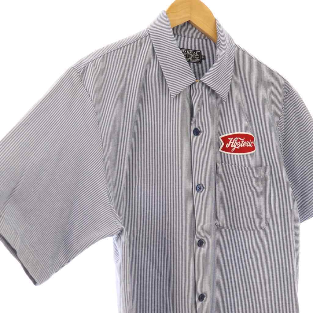 ヒステリックグラマー 23SS GROCERY ワッペンシャツ 半袖 ストライプ S ネイビー オフホワイト マルチカラー /DO ■OS ■SH メンズ