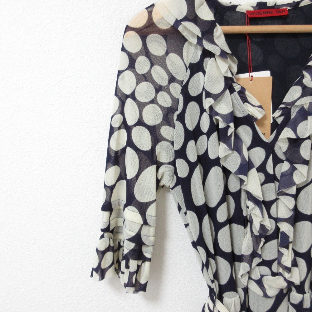未使用 VIVIENNE TAM ヴィヴィアンタム ドットパワーネット ベルテッド ワンピース サイズ1 パープル ホワイト