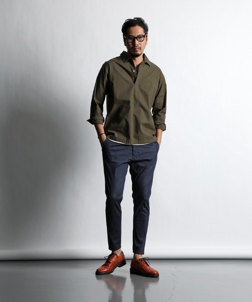 クールだけどキメ過ぎない「ネイビー」、季節を問わないアースカラーの「カーキ」、シックなモノトーンスタイルが完成する「ブラック」、インディゴ染を施しクリーンで落ち着いた雰囲気の「ダークインディゴブルー」、ウォッシュ×色落ち加工を入れたヴィンテージテイストの「インディゴブルー」、ON/OFF使える「ベージュ」、爽やかなスタイリングを提供する「ホワイト」、スペシャルな7カラーをご用意いたしました。