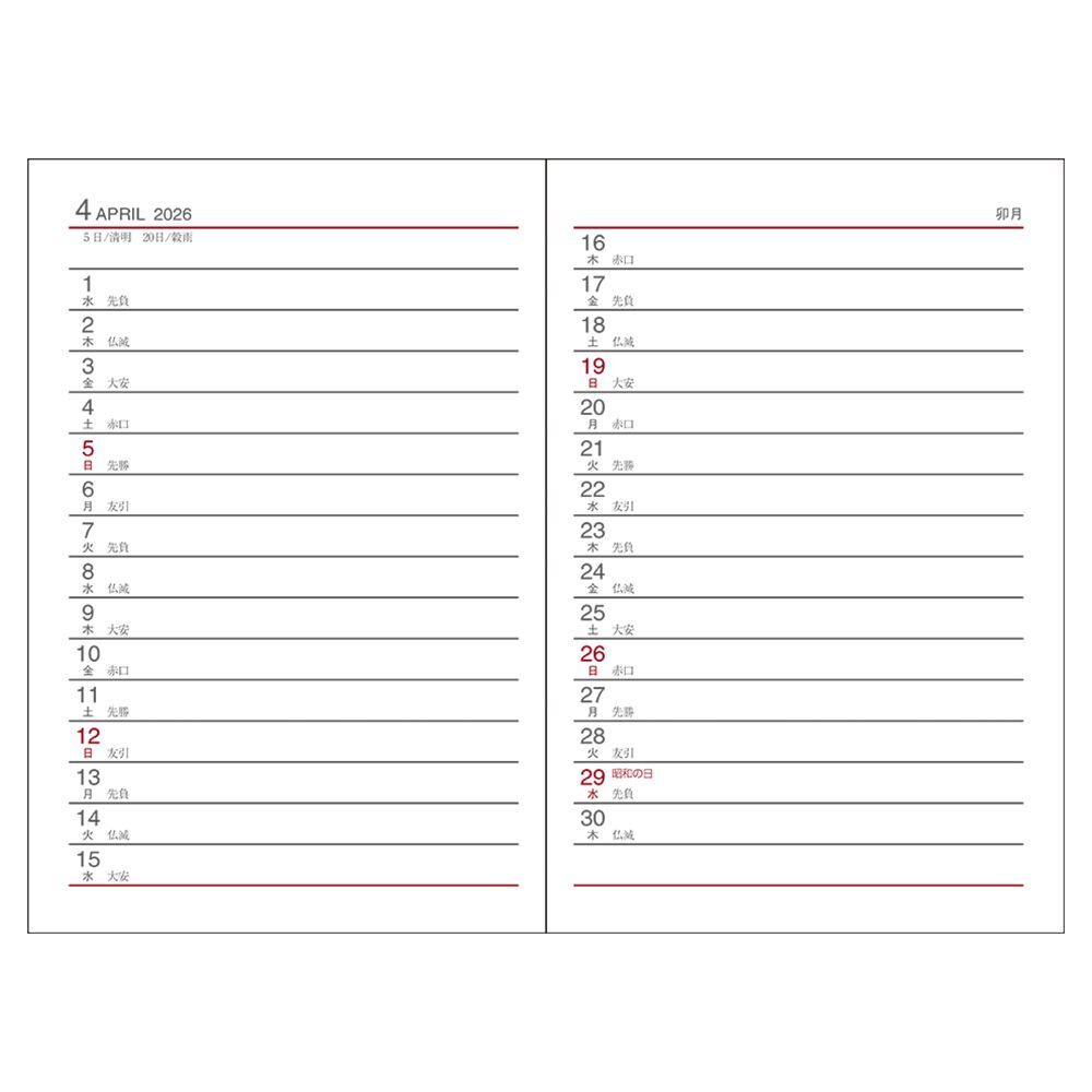 内容:カレンダー・年間スケジュール・月間予定表・週間予定表・横罫・切り取りメモ・パーソナルノート・地下鉄路線図付・全国鉄道地図付・数え方一覧・贈答のエチケット・人生の記念日一覧・暦について・いざという時のための地震マニュアル・印紙税額一覧表・度量衡換算表・用紙サイズ一覧・年齢早見表・住所録、緊急連絡先メモ