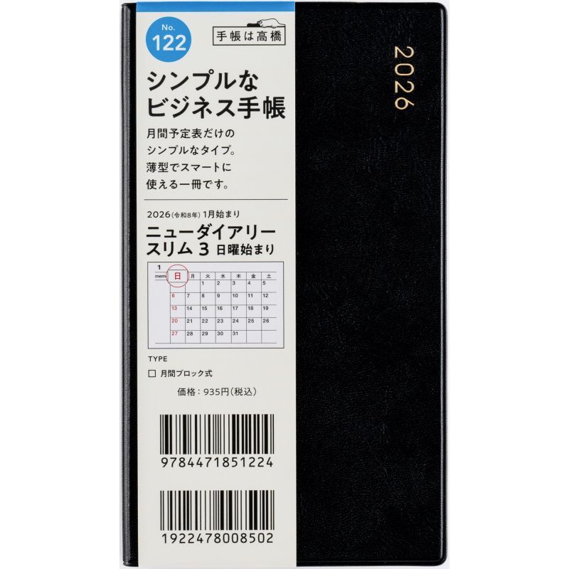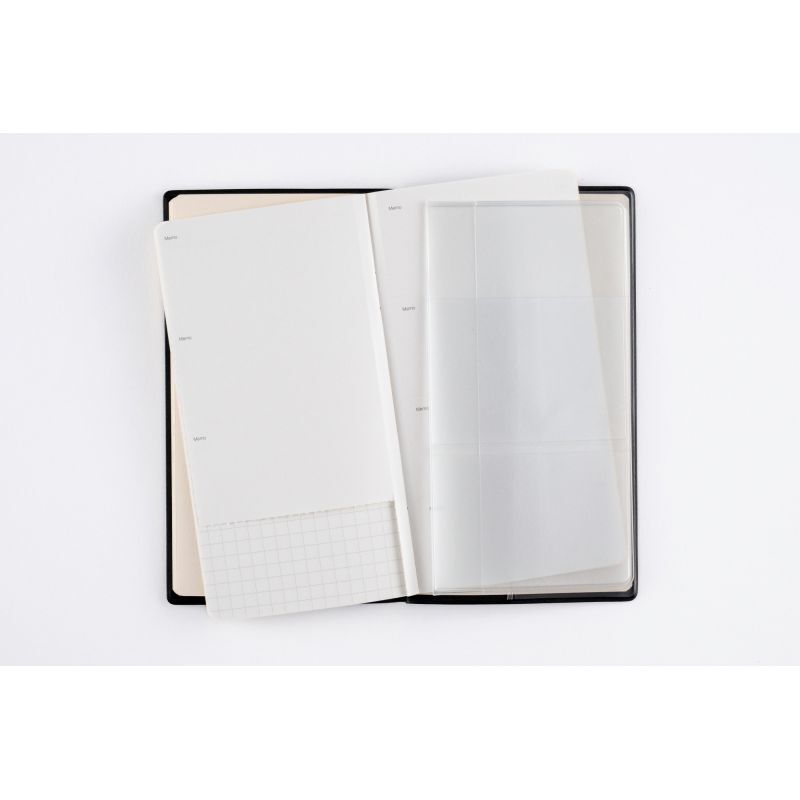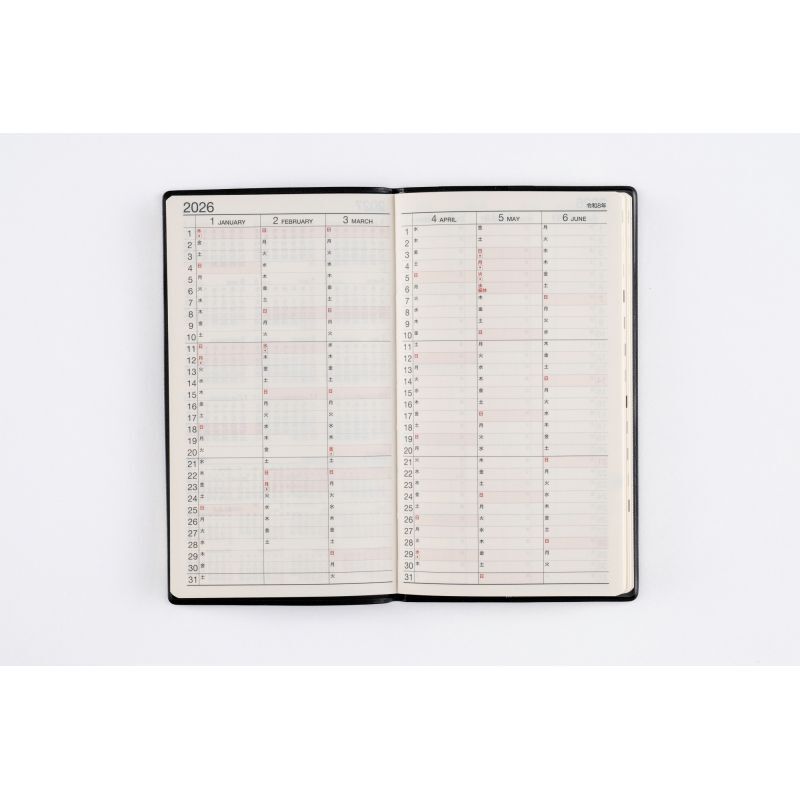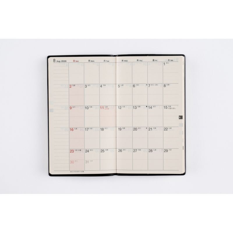 予定管理をするには必要十分なマンスリー手帳。取り外し可能なフリーポケット付き。
