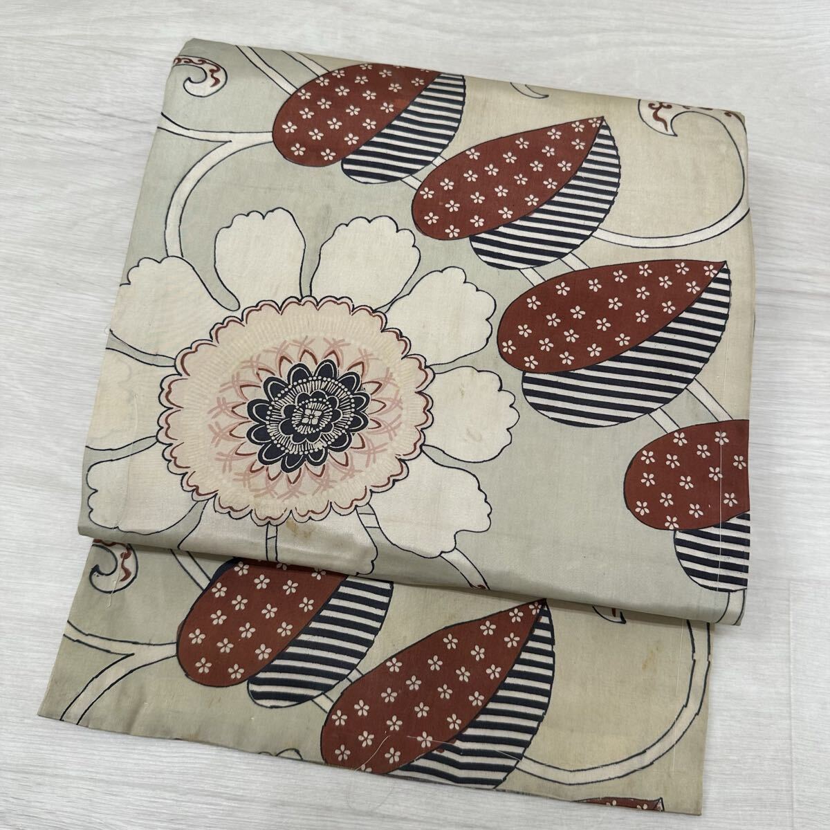 アンティーク 名古屋帯 可愛い花模様 九寸 正絹 着物 W-3921