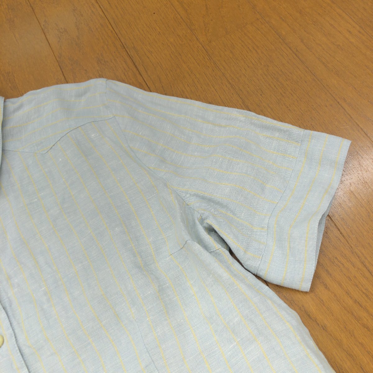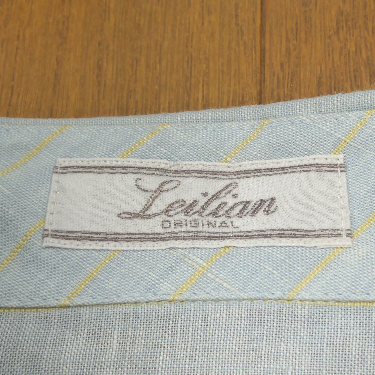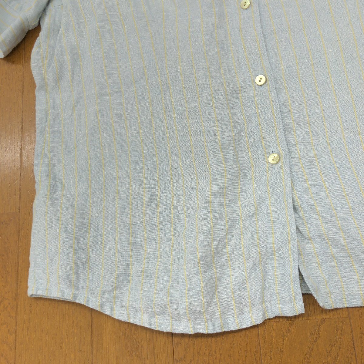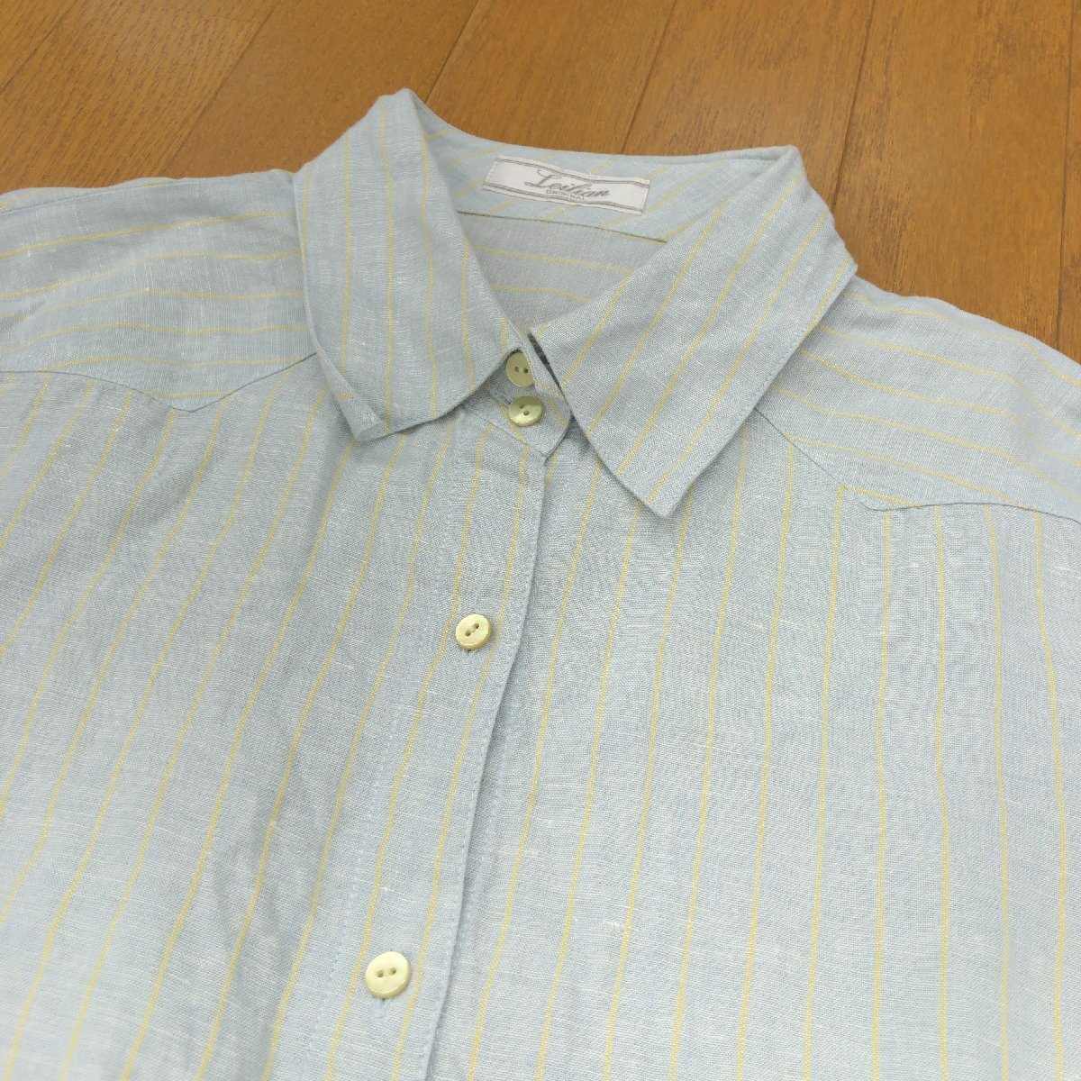 Leilian レリアン 麻 リネン100% ストライプ シャツ 11(L) モスグリーン系 ブラウス 半袖 国内正規品 レディース 女性用 婦人