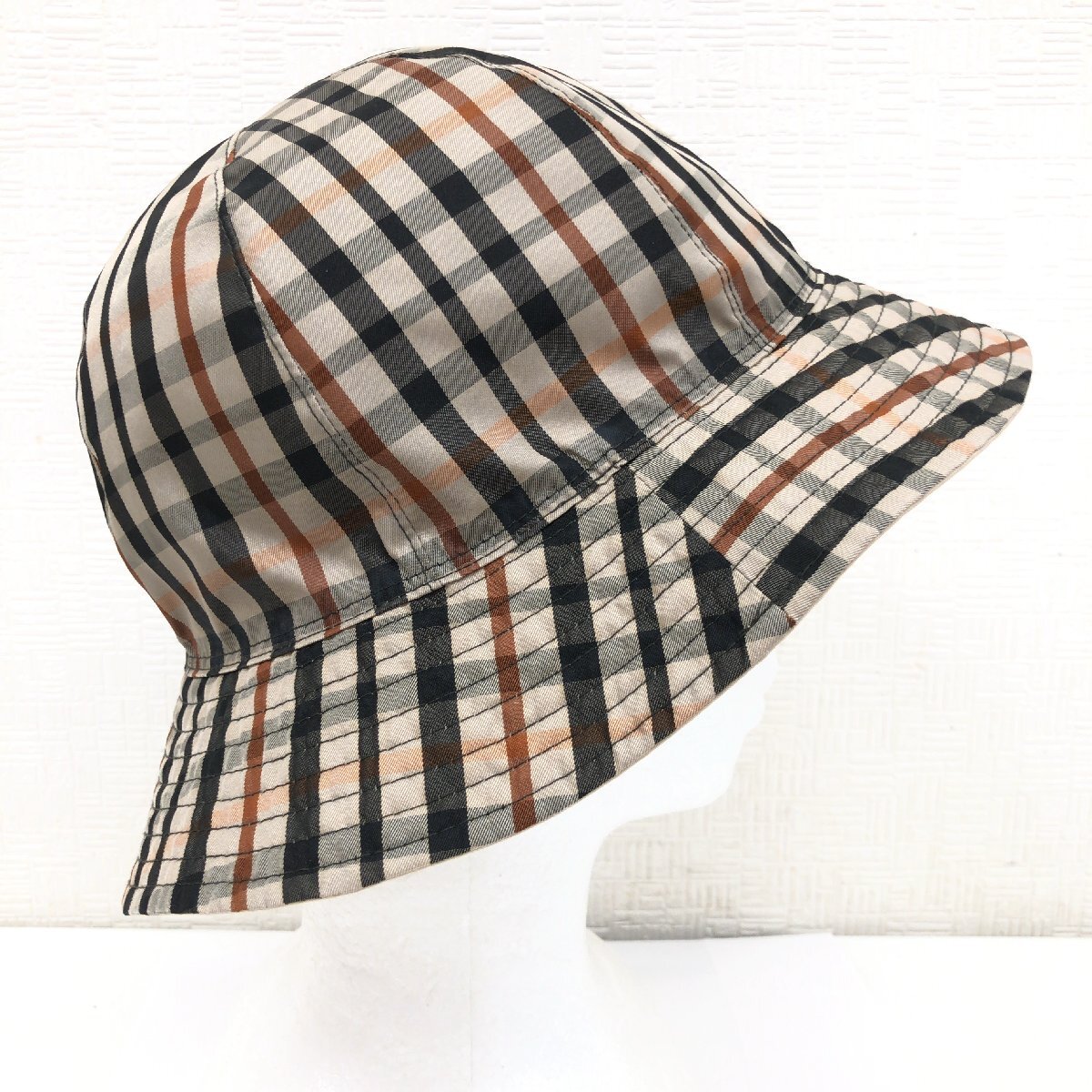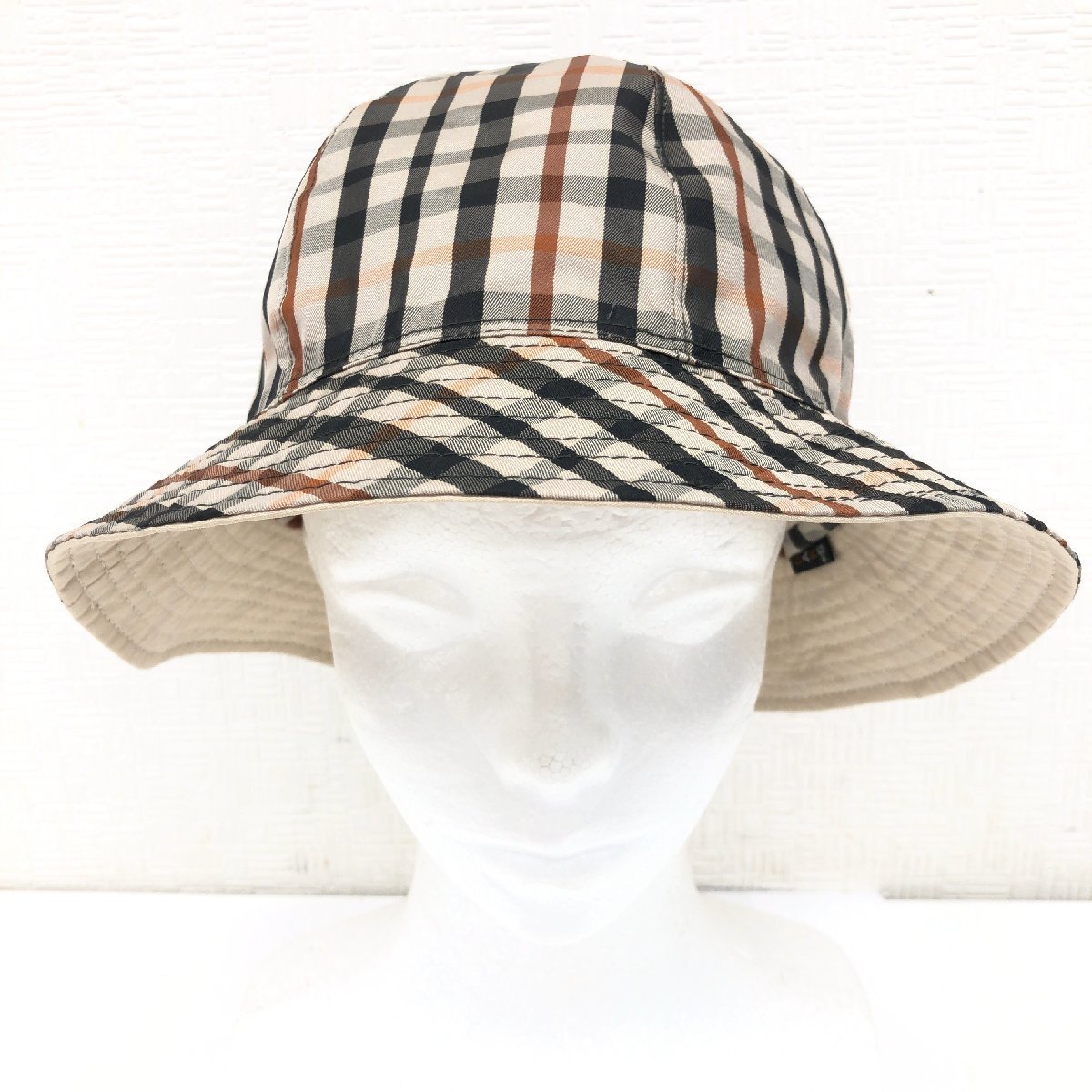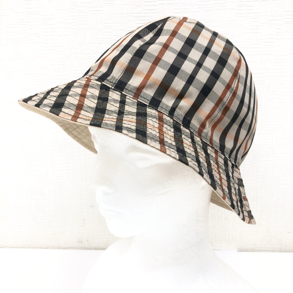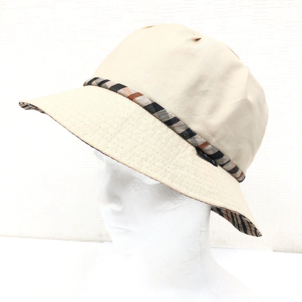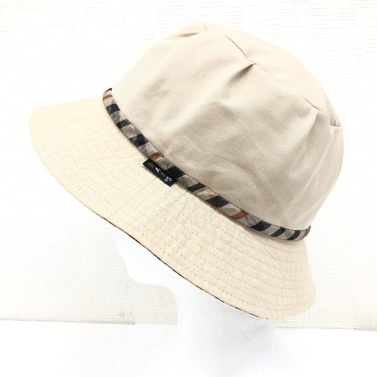美品 DAKS ダックス ハウスチェック リバーシブル バケットハット F ベージュ系 バケハ クロッシェ 帽子 日除け UV対策 レディース 女性用