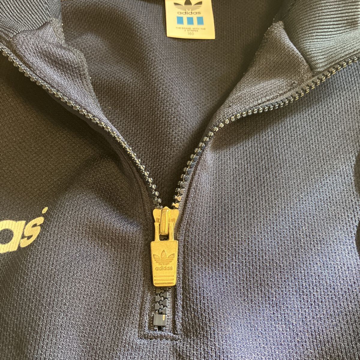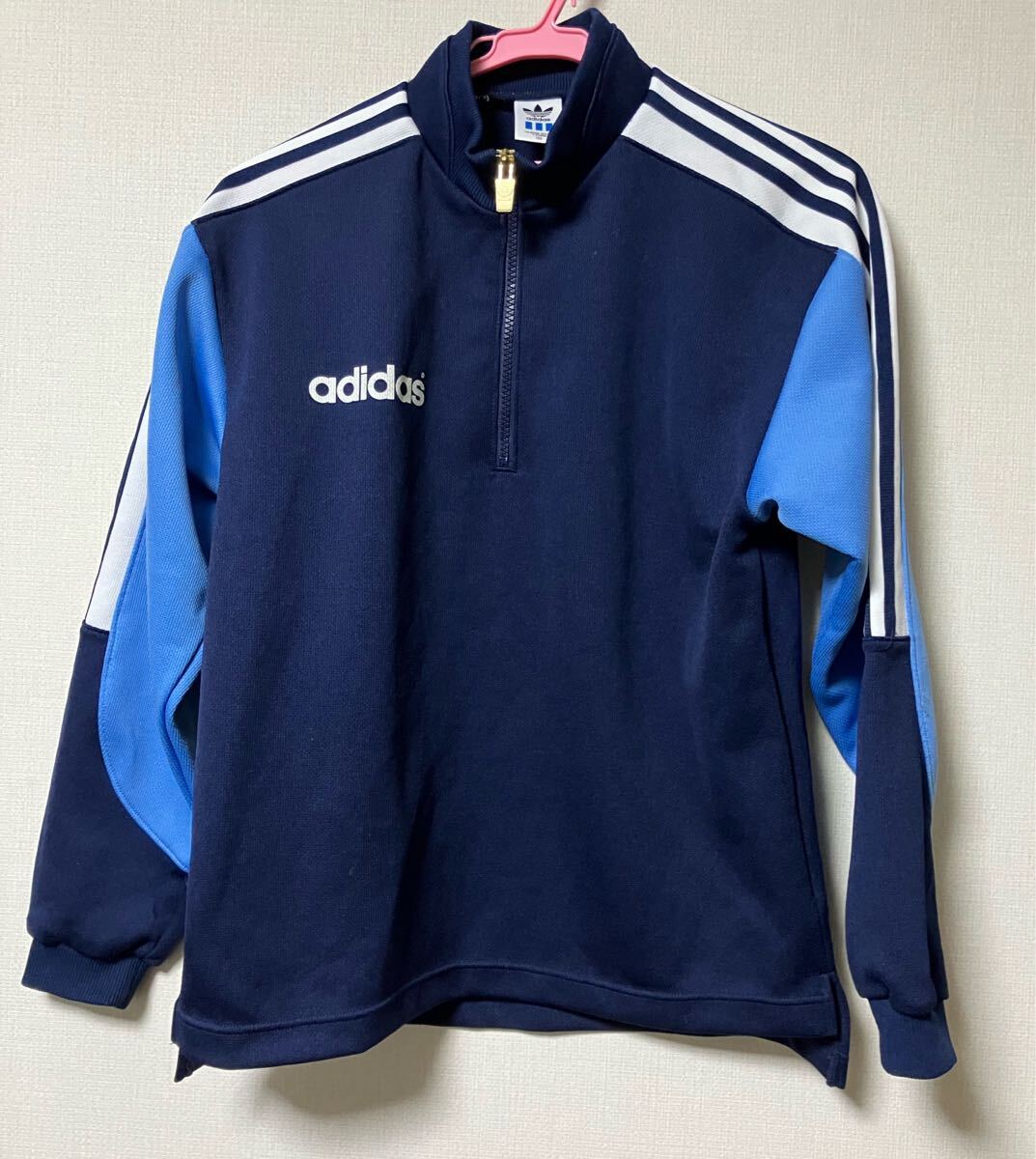 adidasのハーフジップのレトロなジャージです。サイズは160センチです。