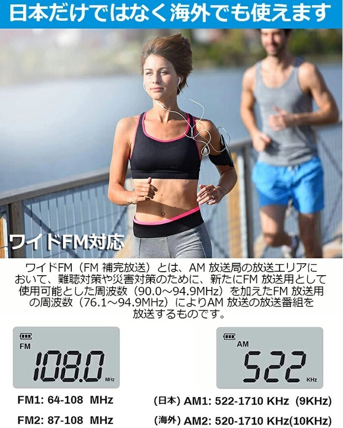 【DSP技術採用】:DSP技術を採用されたミニデジタルラジオは強大なデータ処理と高速運行、信号安定、高感度、受信強い、オーディオの伝送は失わない、fm&amラジオ、全週波数:FM:64-108MHZ AM:522-1710KHZ(9K)日本向け、520-1710KHZ(10K)海外向け。日本国内だけでなく、国外使用可能なラジオです。