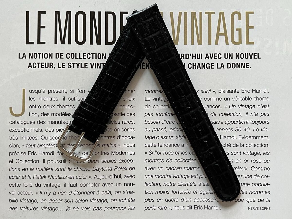 ◆デッドストック品 ヴィンテージ ブラック リザードテジュー型押し 18mm リアルレザー
