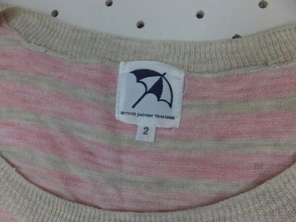 Arnold Palmer アーノルドパーマー レディース ワンポイント刺繍 ボーダー切替 綿ニットワンピース 2 ピンクベージュ です。