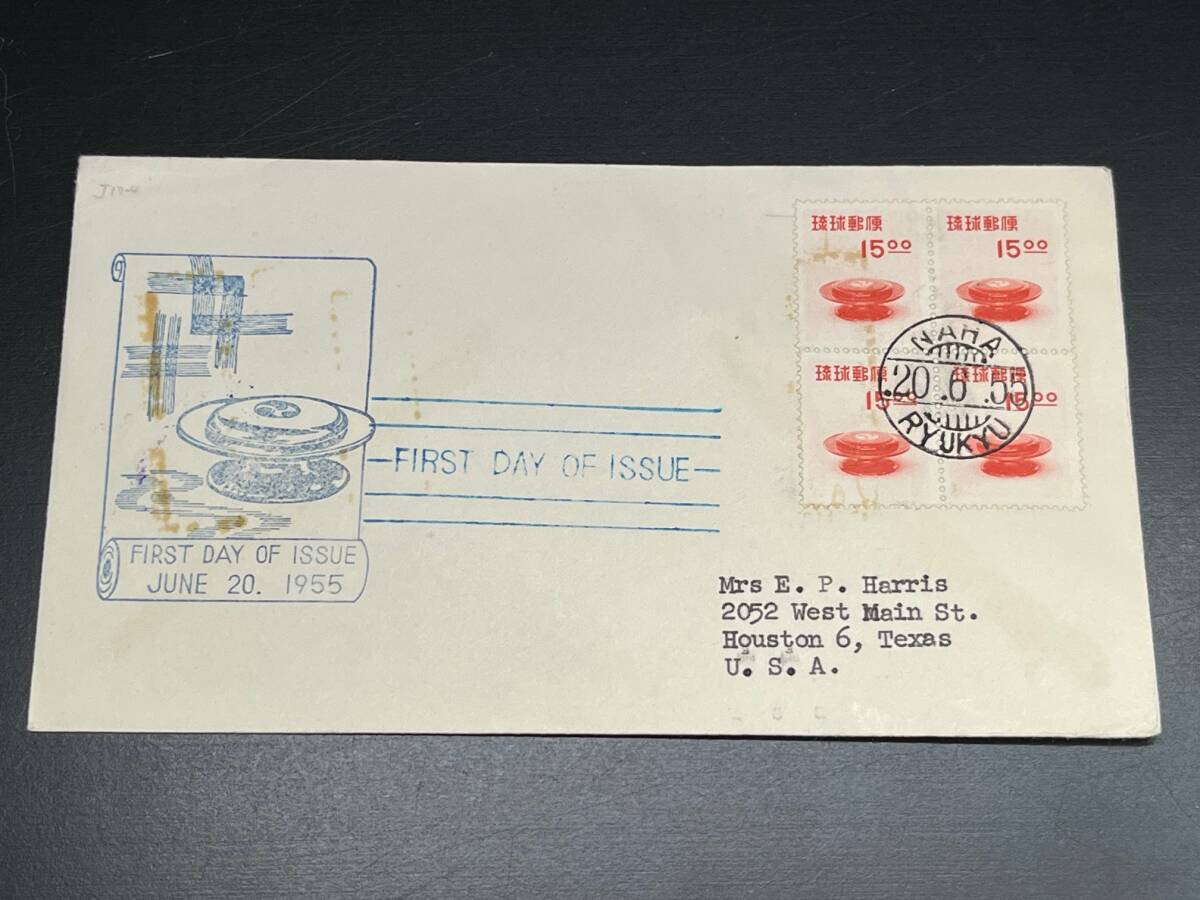 琉球郵便1955年普通切手東道盆15C4枚貼りです。