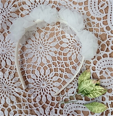 白のオーガンジー布の花が4個付いたヘッドバンドです。