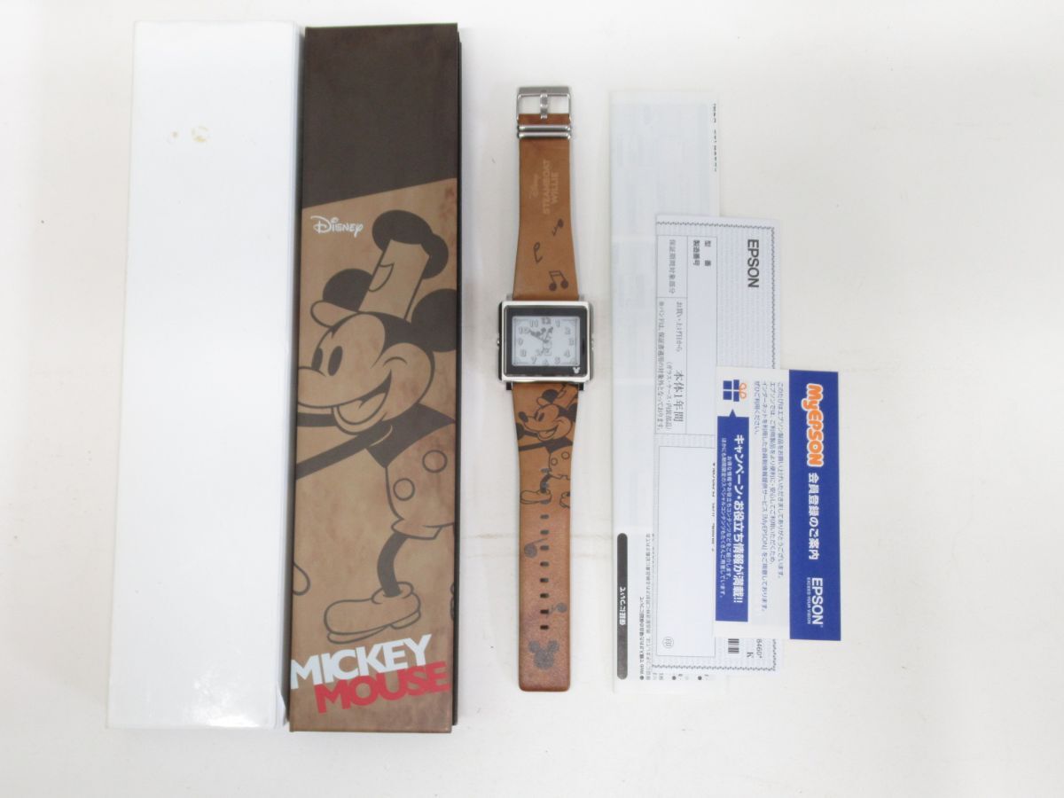 1F-T1 極美品 腕時計 セイコーエプソン スマートキャンバス ミッキーマウス ヴィンテージシリーズ ブラウン W1-DY10110 デジタル