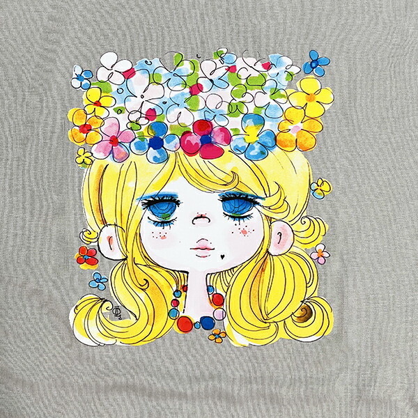商品名 | 水森亜土 お花の少女柄 オーガニックコットン半袖Tシャツ(L) グレー アパレル |