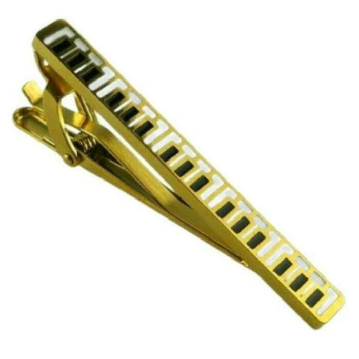 | ★製品仕様 材質:合金(真鍮) コーティング:金メッキ サイズ:全長約5.5cm×全幅0.55cm 重量:約8g 付属品:巾着袋 パッケージ:クリスタルパック(専用ケースは付属しません) ピアノの鍵盤をモチーフにしたネクタイピンです。 他にもネクタイピンを出品しております。 宜しければ『マイオークション』をご覧ください。 |
