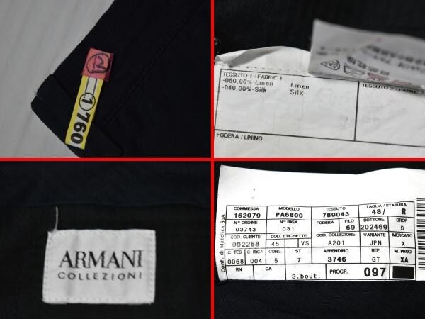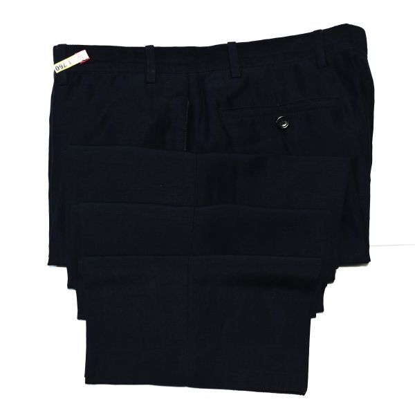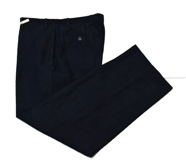 ★⑫★ARMANI COLLEZIONI★アルマーニ★気品漂うネイビー#高級リネン麻シルク絹#艶やかで美しくセレブに愛される春夏薄手のパンツ48ML/W88