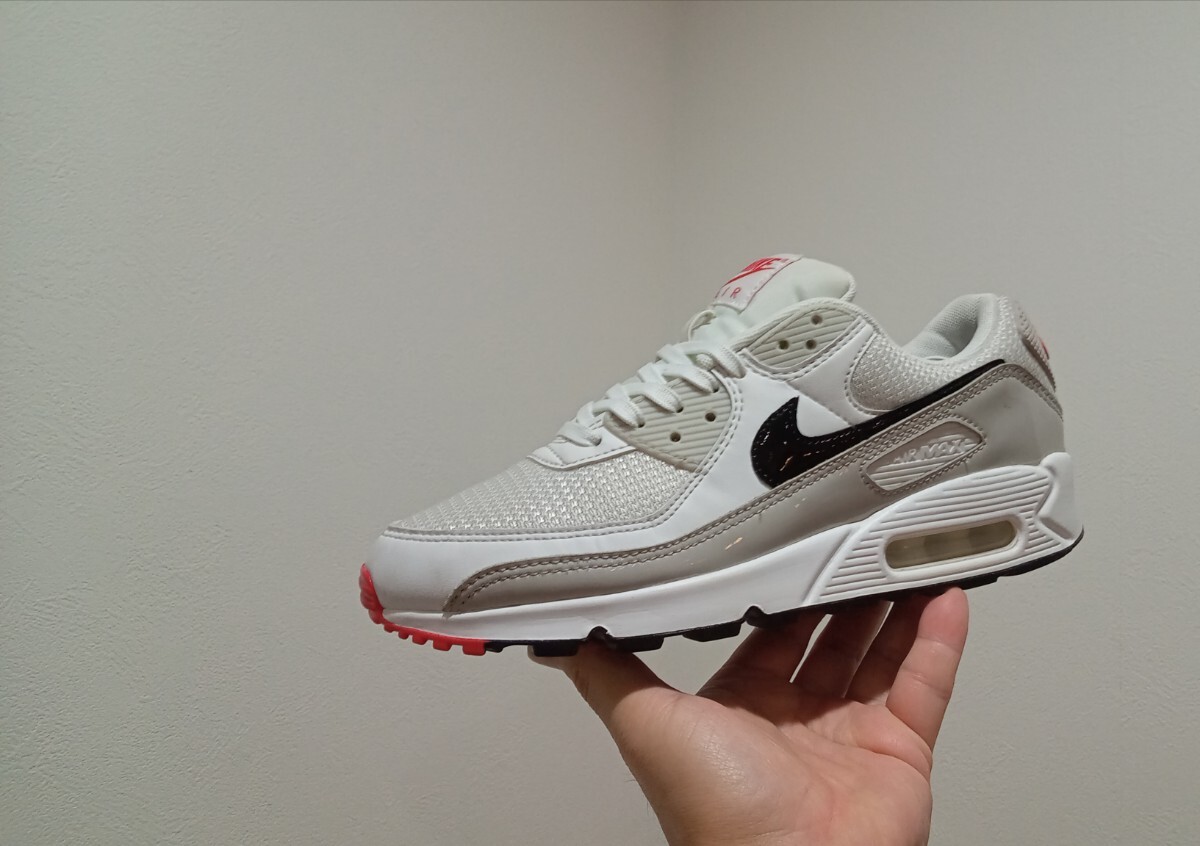 ■NIKE WMNS AIR MAX 90 WHITE/BLACK-LT IRON ORE-UNIVERSITY RED