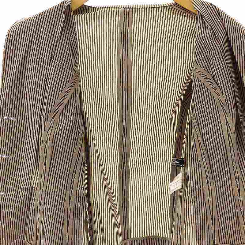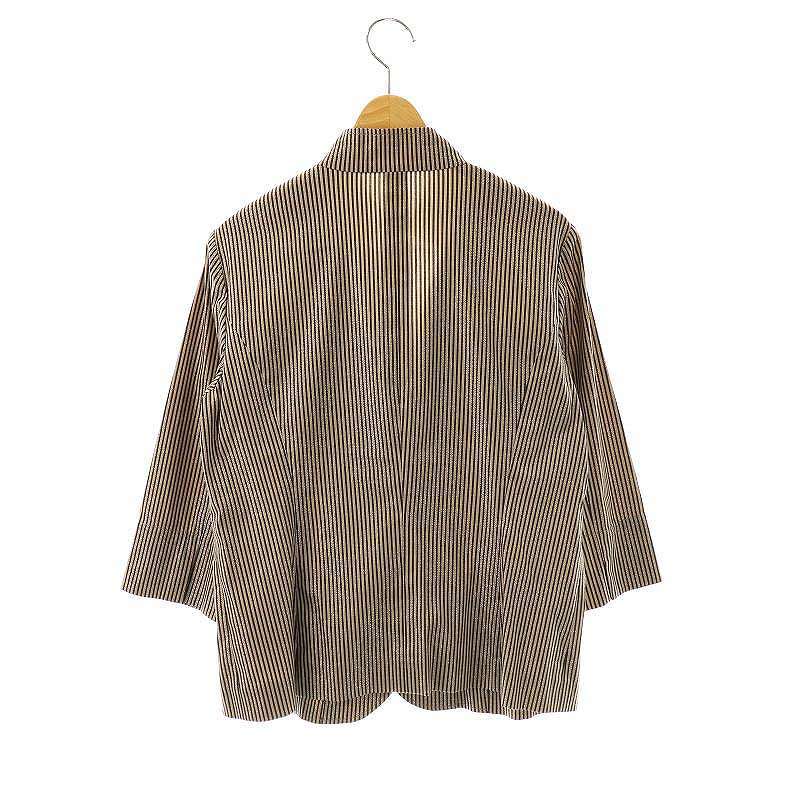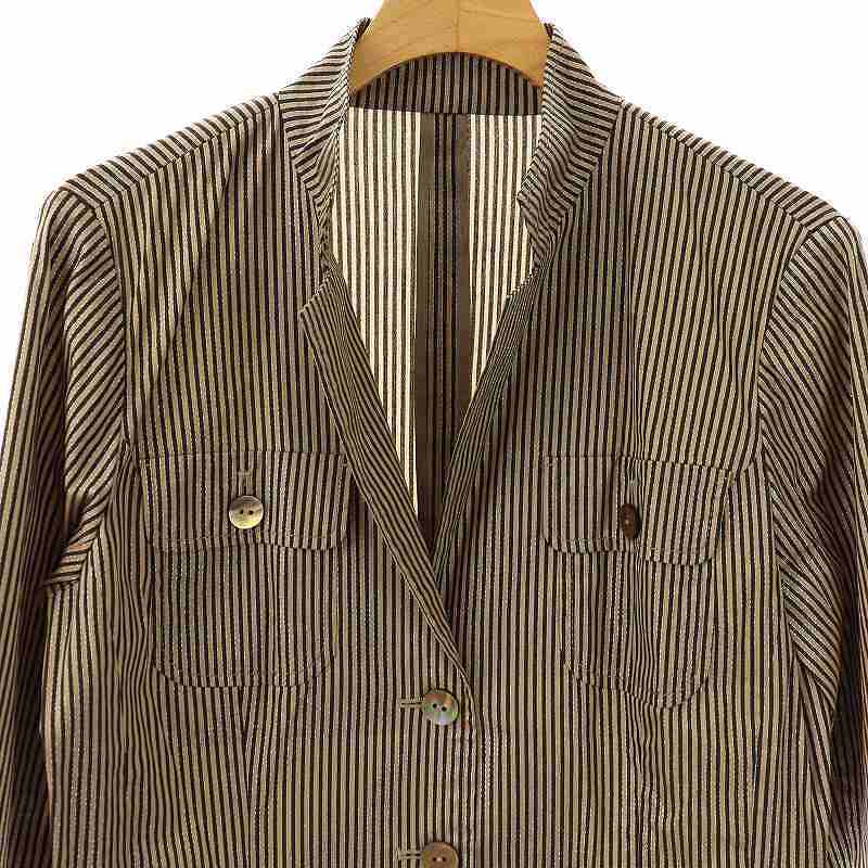 レリアン Leilian ストライプ ジャケット テーラード ラメ 薄手 9 ベージュ ブラウン /CX ■OS レディース