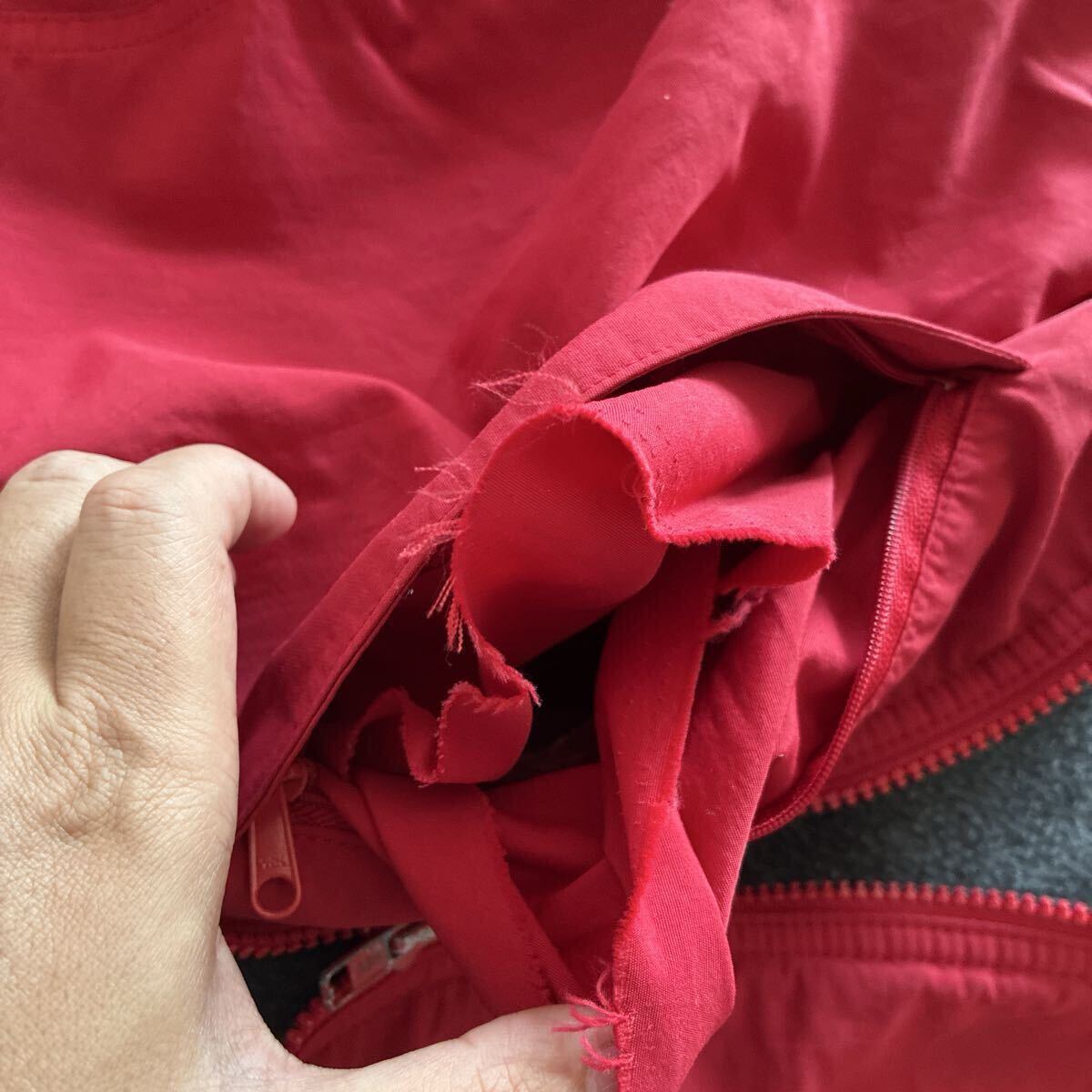 状態:薄汚れあり。胸ポケットが破れていますので現状では使えません。縫えば直るレベルです。内側のドローコードが伸びてます。直せる、使わない人向け
