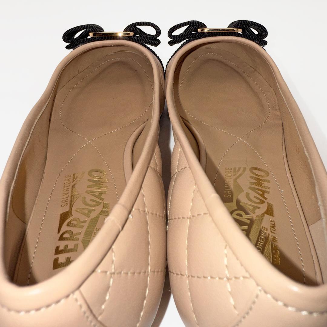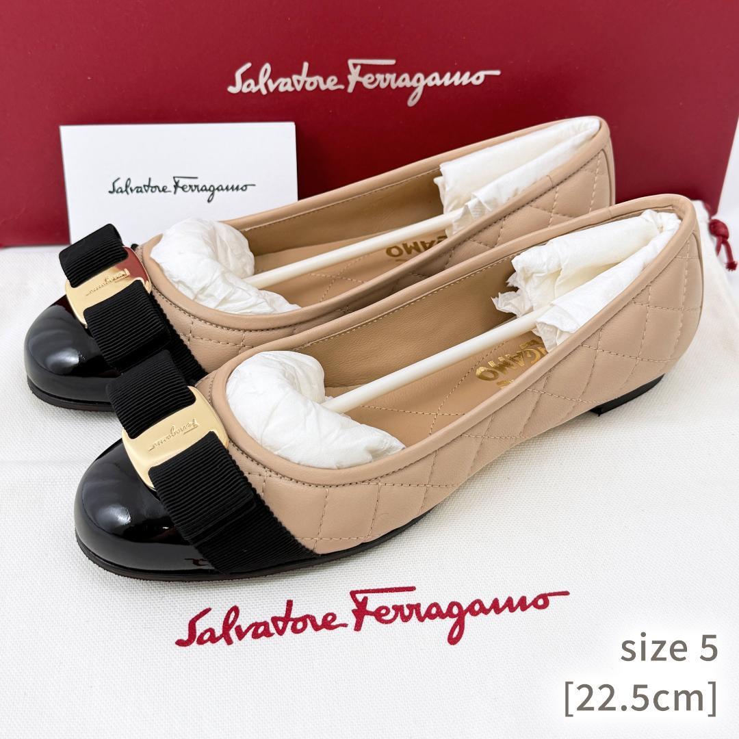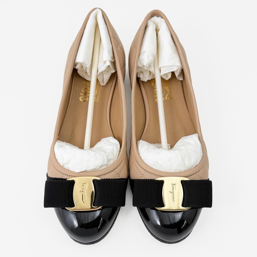定価13万【新品】フェラガモ パンプス バレエシューズ バレリーナ フラットシューズ ヴァラ キルティング 黒 ベージュ コンビ 22.5㎝ 5