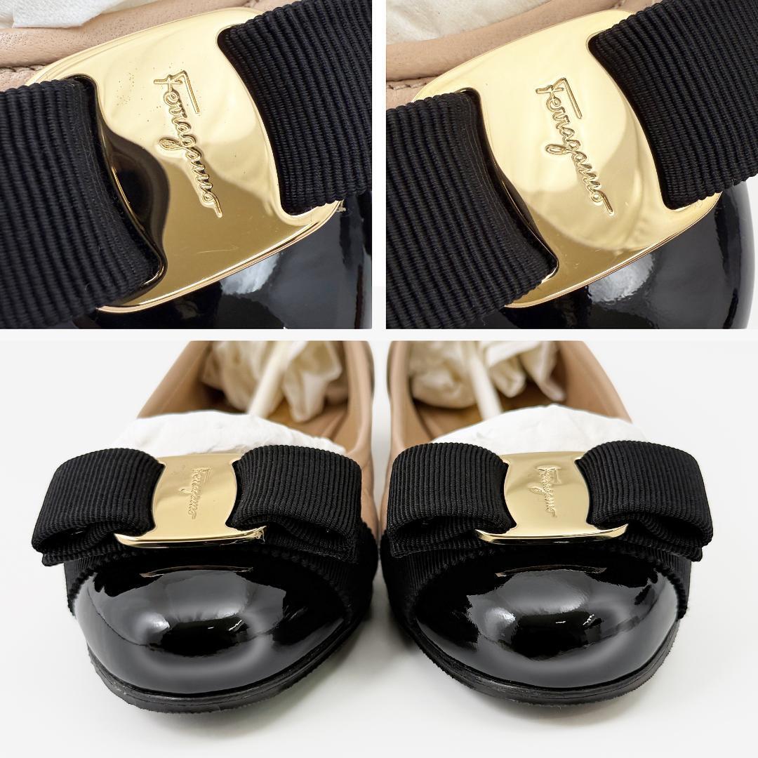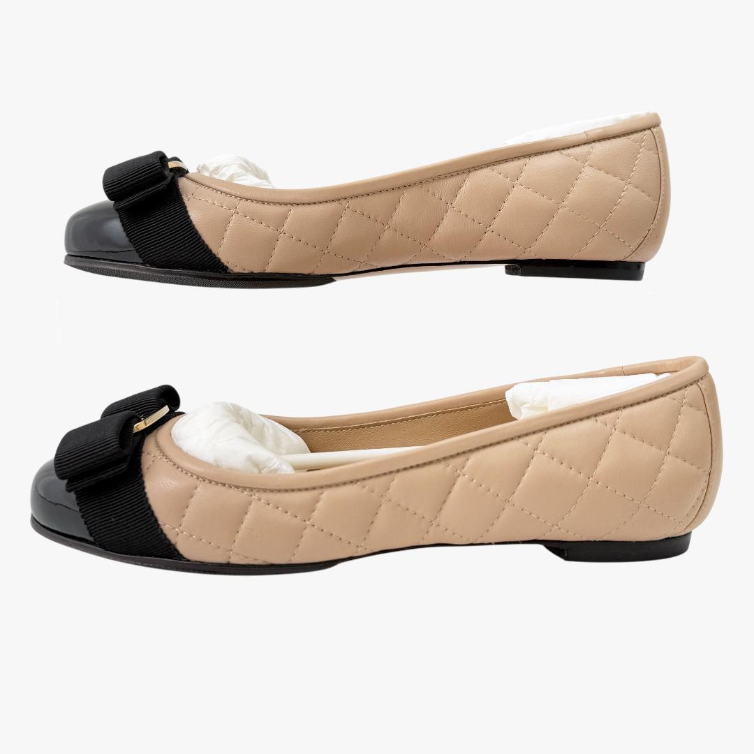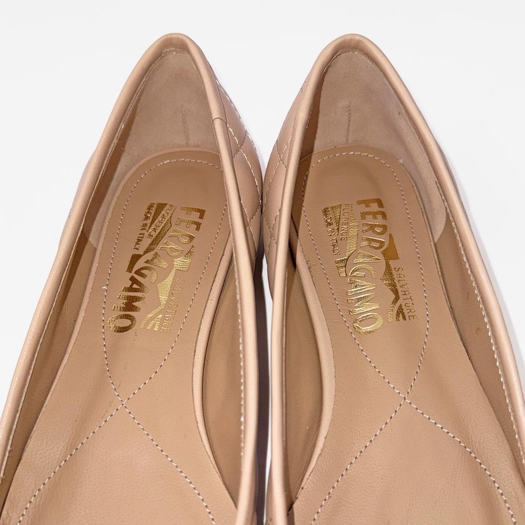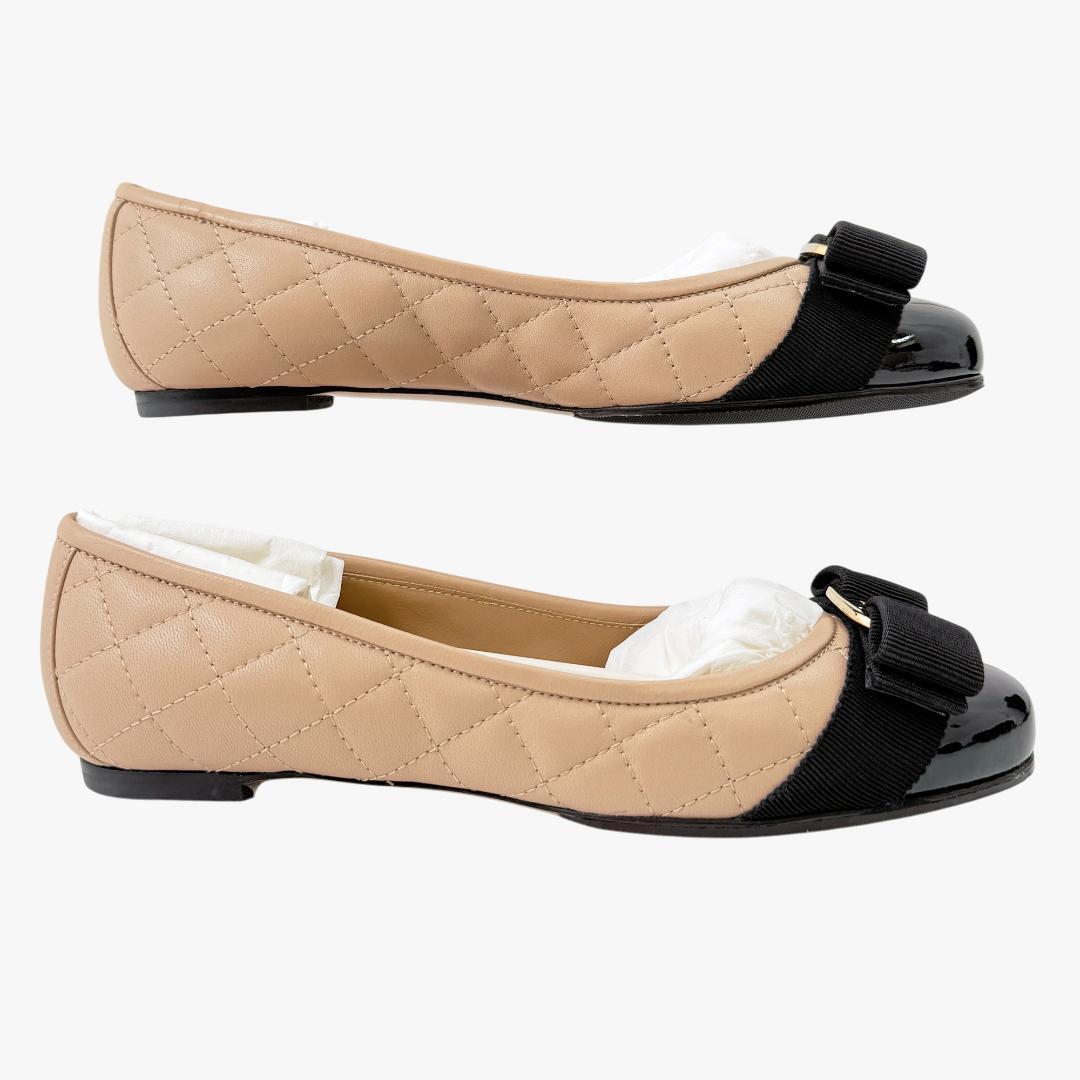 定価13万【新品】フェラガモ パンプス バレエシューズ バレリーナ フラットシューズ ヴァラ キルティング 黒 ベージュ コンビ 22.5㎝ 5