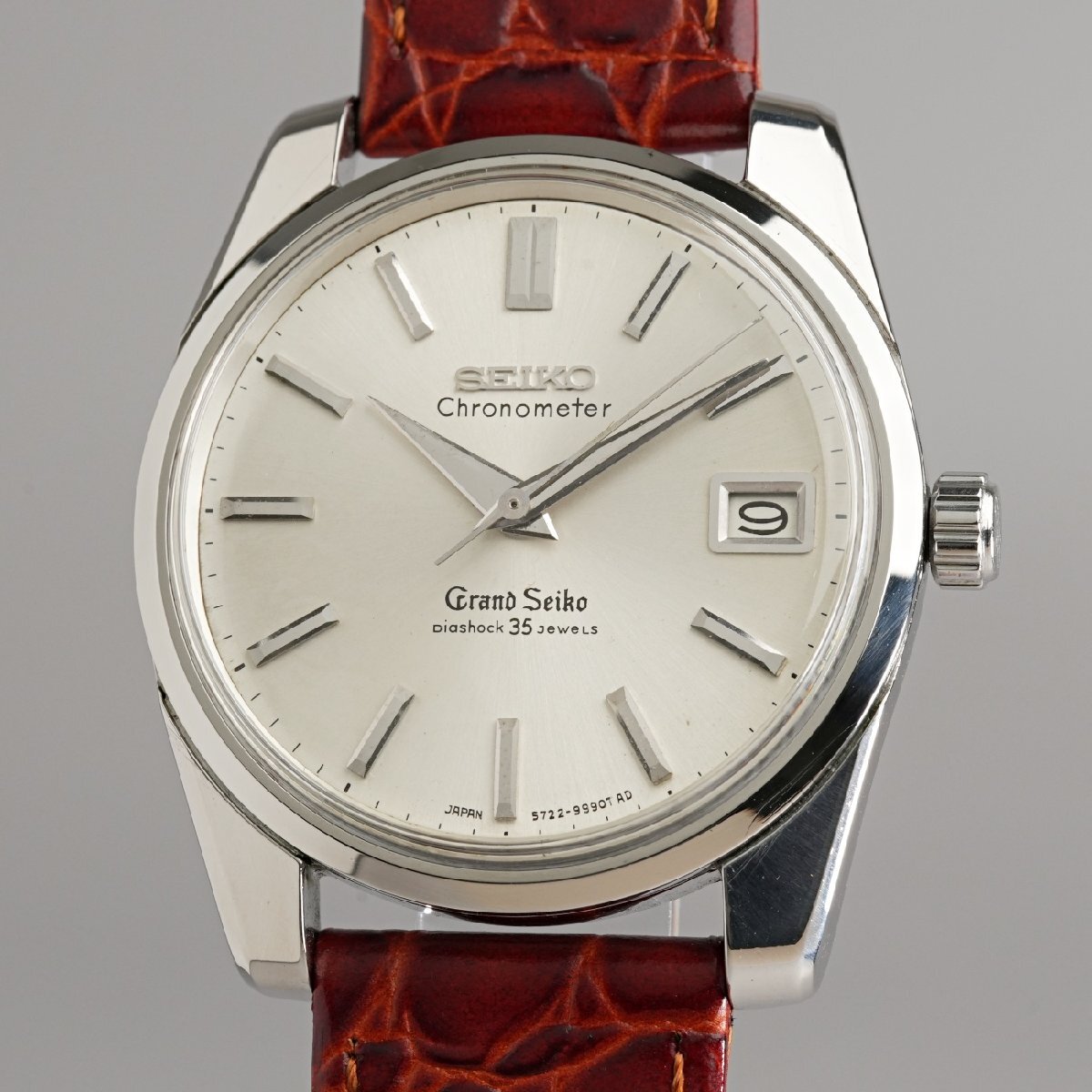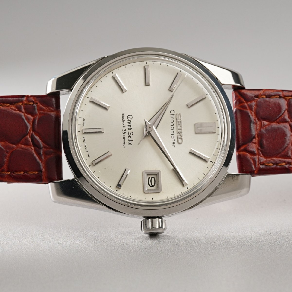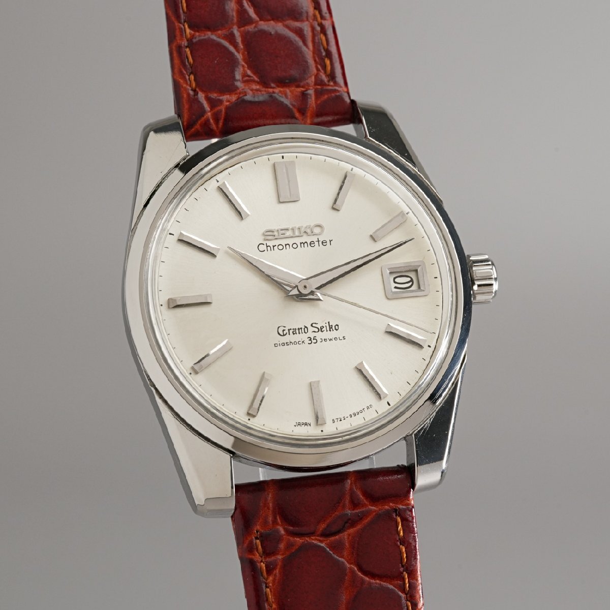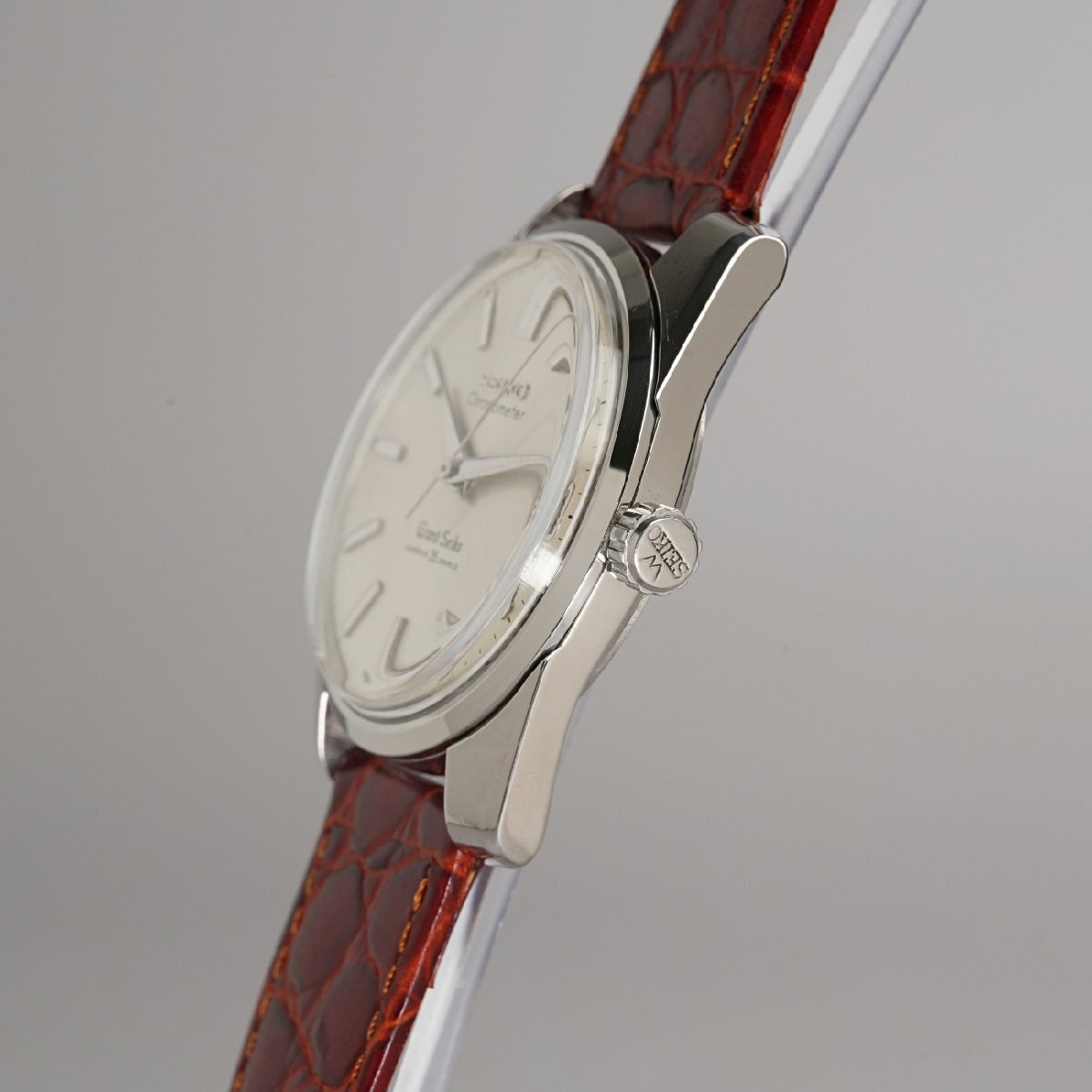 一部の特権階級向けだった最高級品ファーストから実用性と耐久性を兼ね備えた高級品として、一般へも普及させようという考えに基づいた、諏訪精工舎製最後の手巻き式グランドセイコーでです。