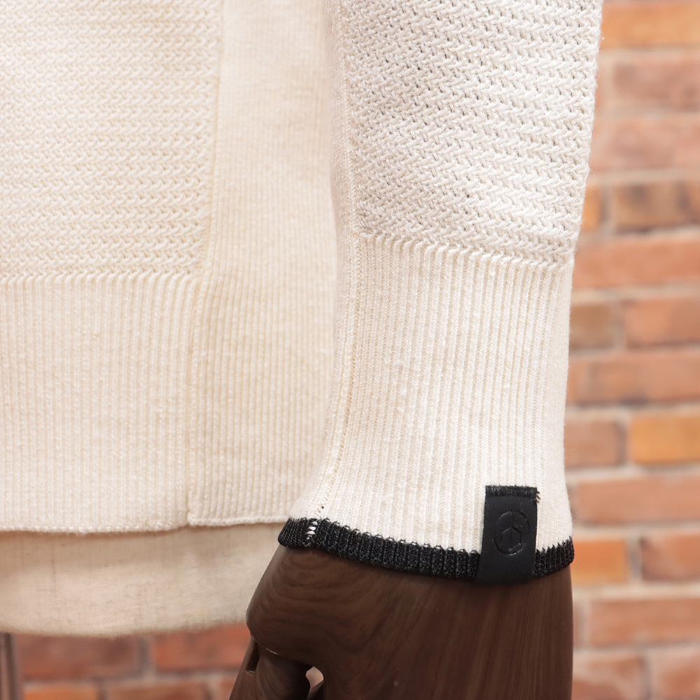 コットンをベースに、ヘンプやナイロン、ポリウレタンをブレンドしたニット。天然素材ならではのナチュラルな表情に加え、ヘンプ特有のドライタッチと通気性が心地よく、シーズンを問わず快適な着用感を叶えます。伸縮性を持たせることでフィット感にも優れ、軽やかな着心地を実現。無駄のないシンプルなデザインは、rag&boneらしい洗練されたシティライクな佇まいを演出します。デニムやスラックスとも好相性で、カジュアルからスマートなスタイルまで幅広く活躍する万能アイテムです。
