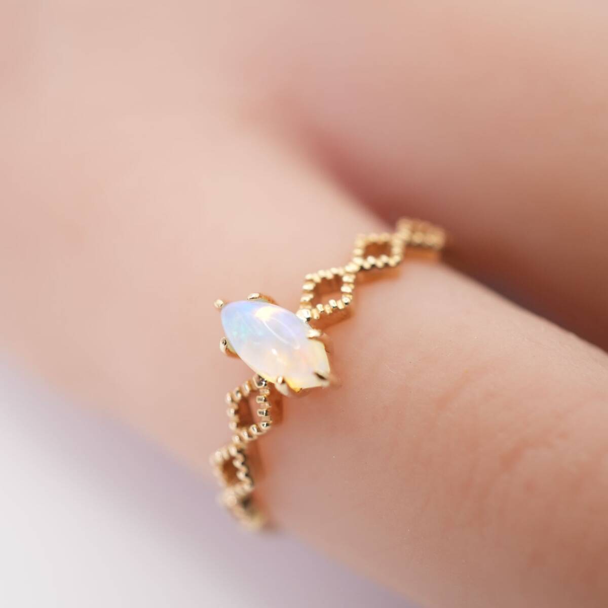 美品 エテ ミル打ち リング 透かし オパール/24-4236