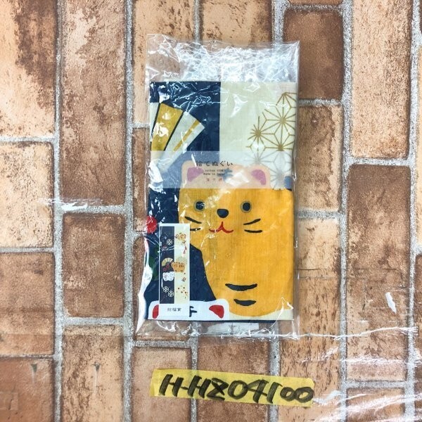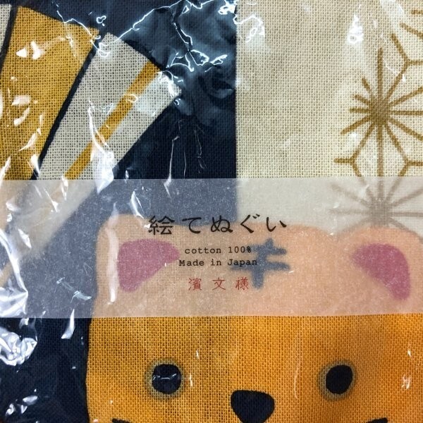 新品!濱文様 招福寅 絵てぬぐい 日本製 コットン ハンカチ 紺オレンジ