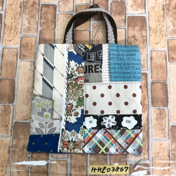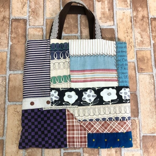 レディース ハンドメイド パッチワーク 中綿 トートバッグ 茶