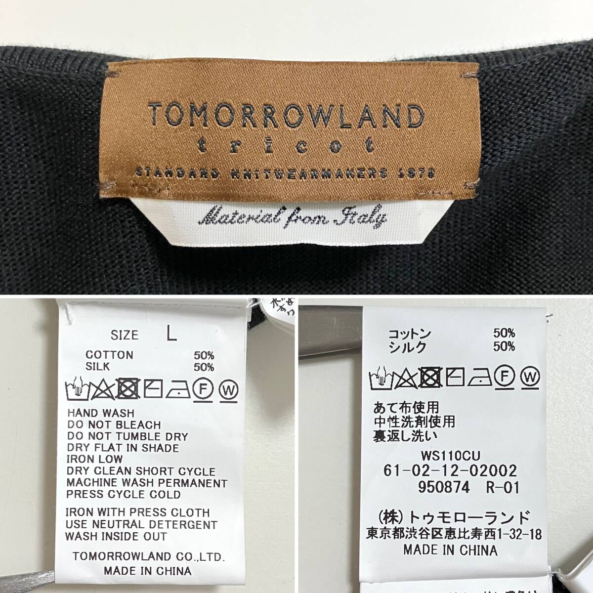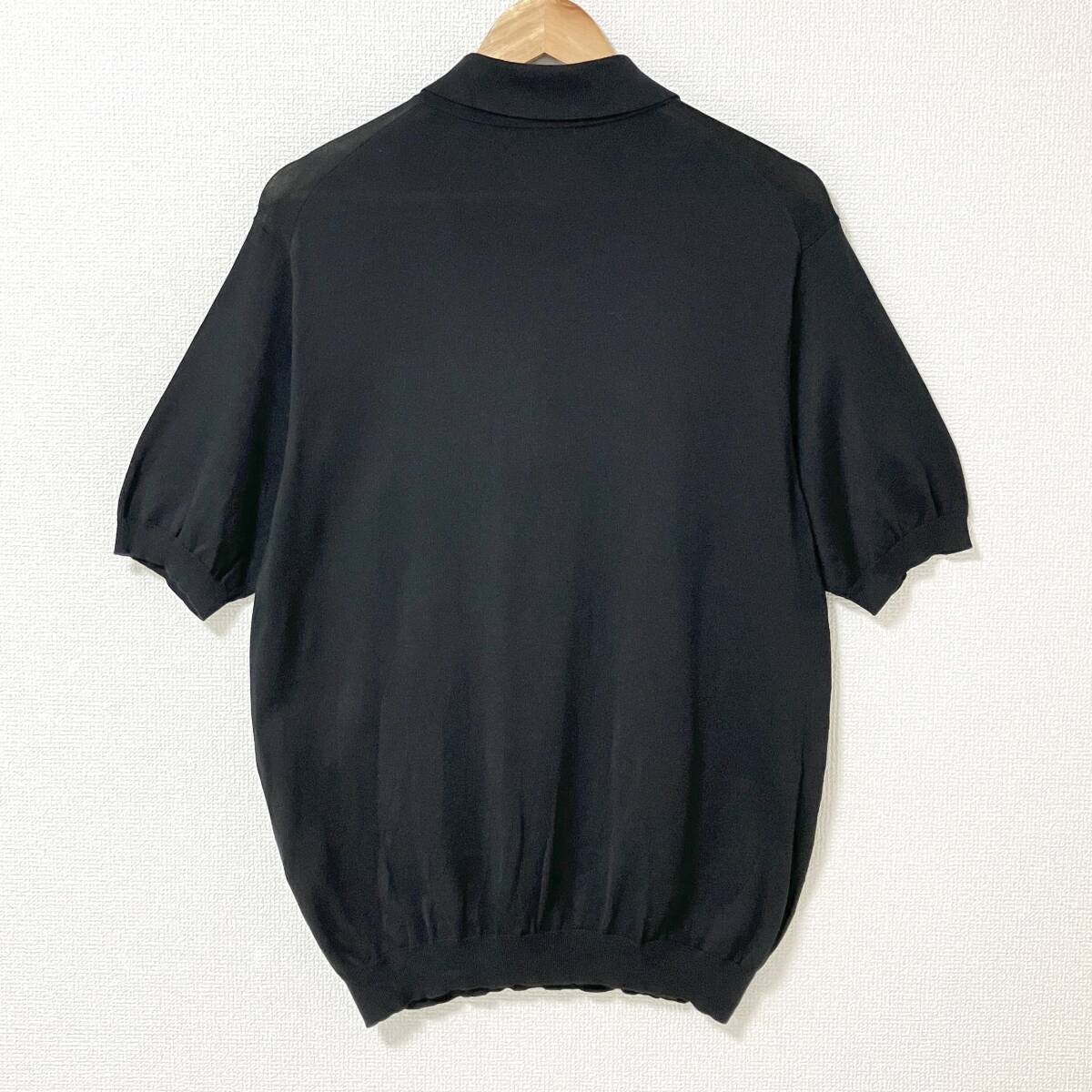 TOMORROWLAND tricot コットン×シルク 混紡 ニット 半袖 ポロシャツ ブラック 黒 Lサイズ トゥモローランド カットソー セーター 5080311