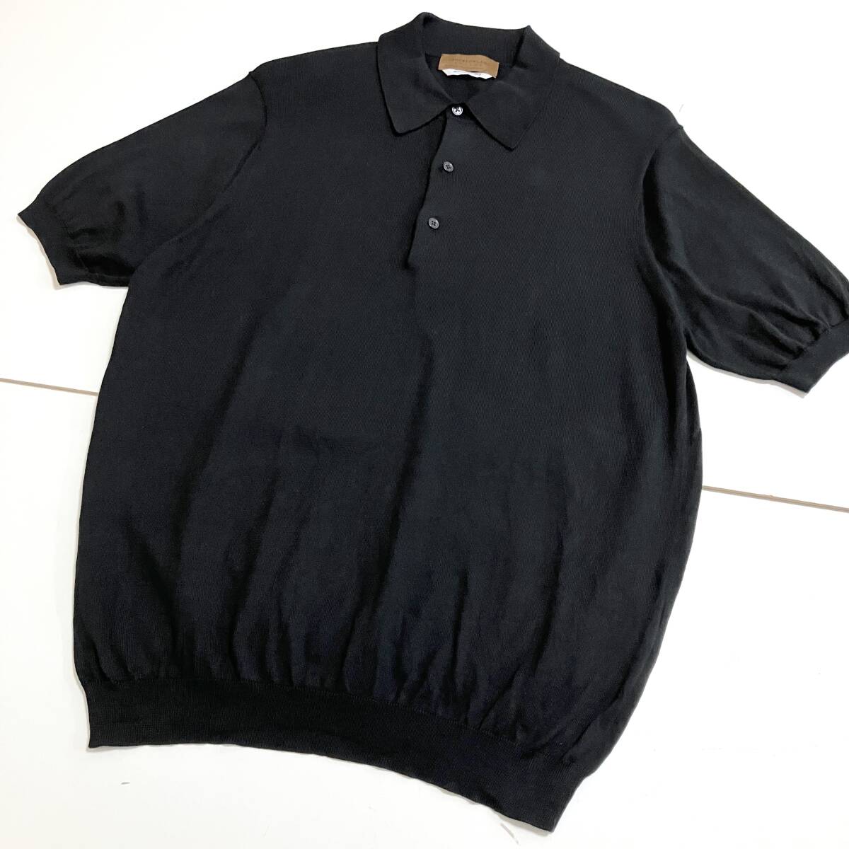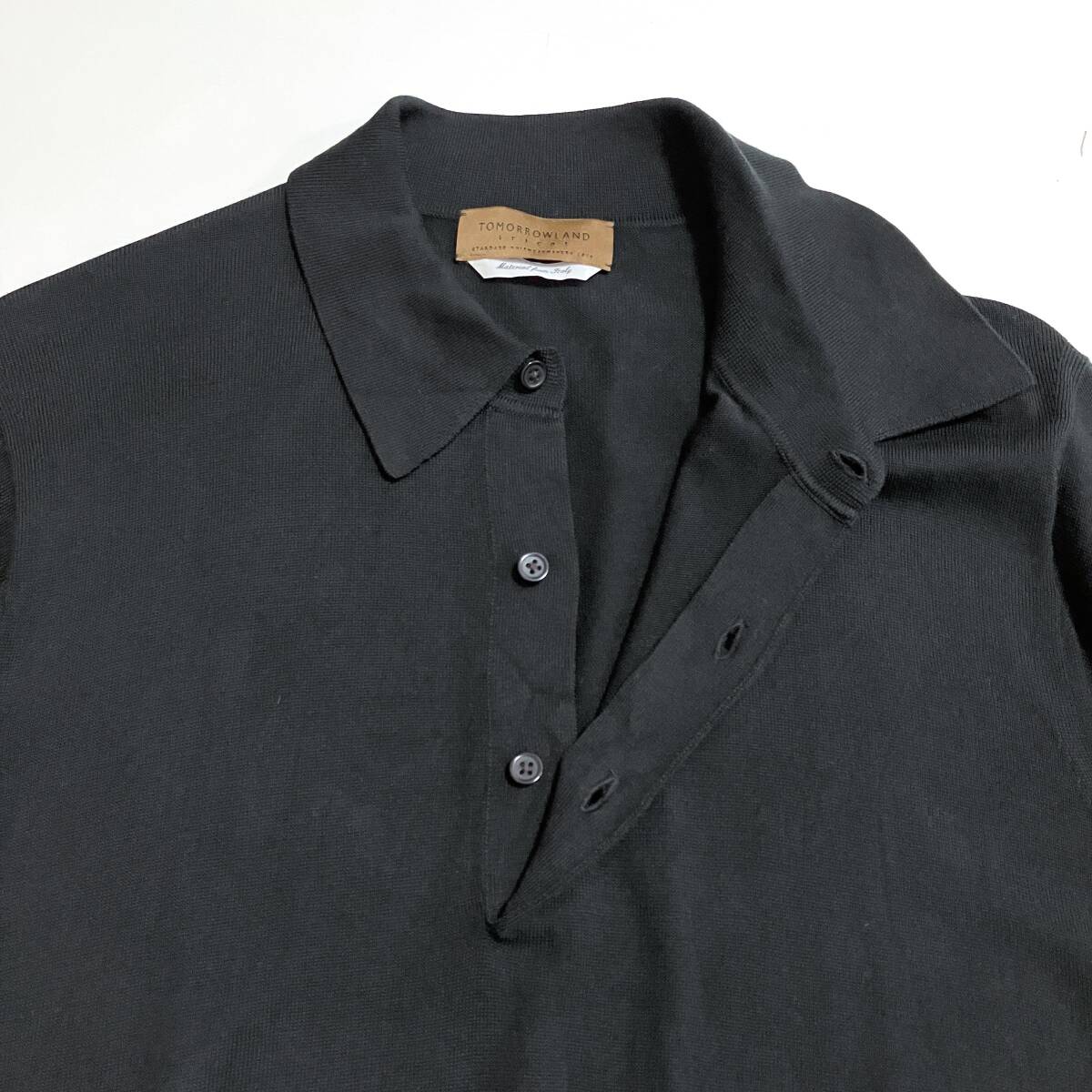 TOMORROWLAND tricot コットン×シルク 混紡 ニット 半袖 ポロシャツ ブラック
