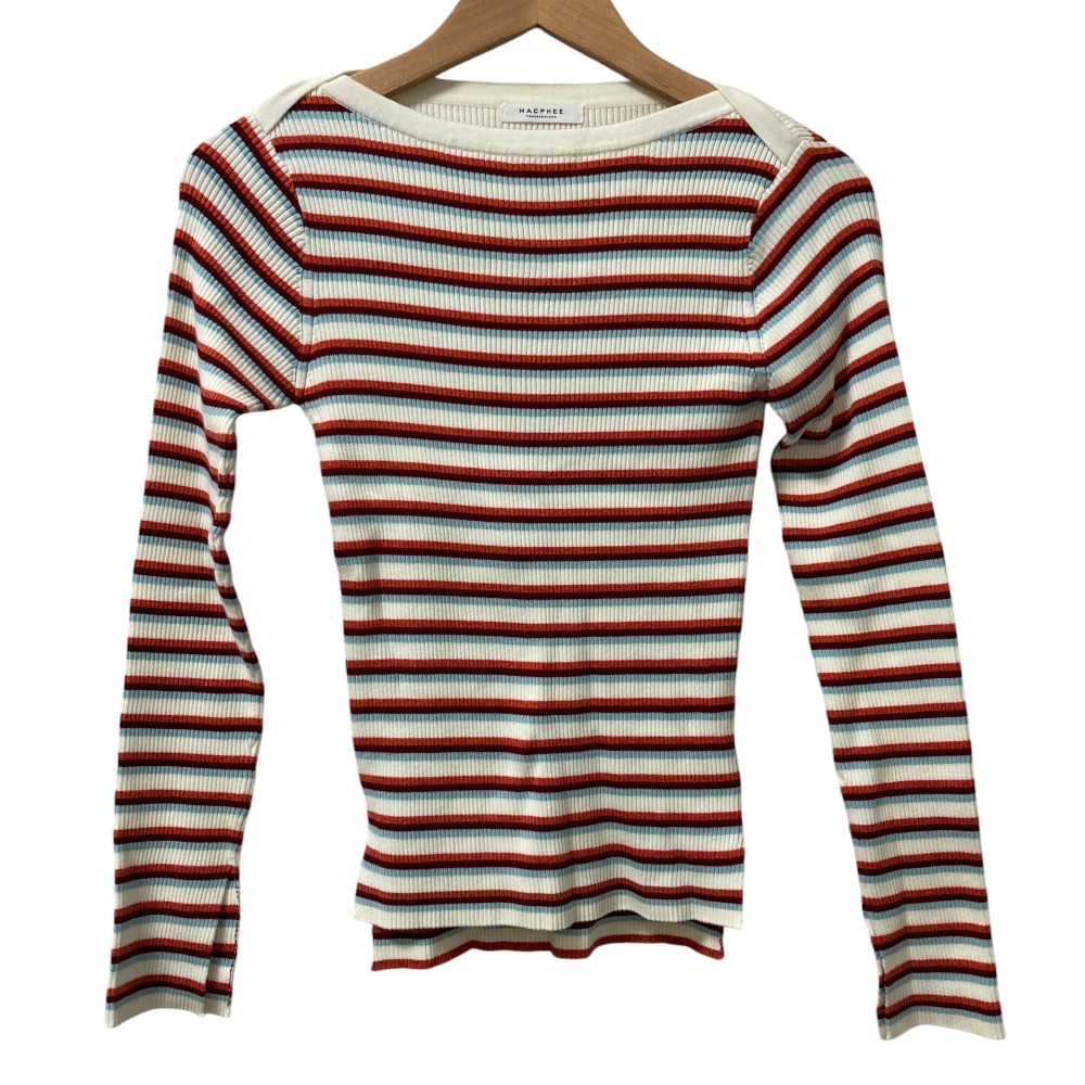 美品 24SS MACPHE マカフィー トゥモローランド ボーダー柄 コットンリブ ボートネックプルオーバー ニット S マルチカラー