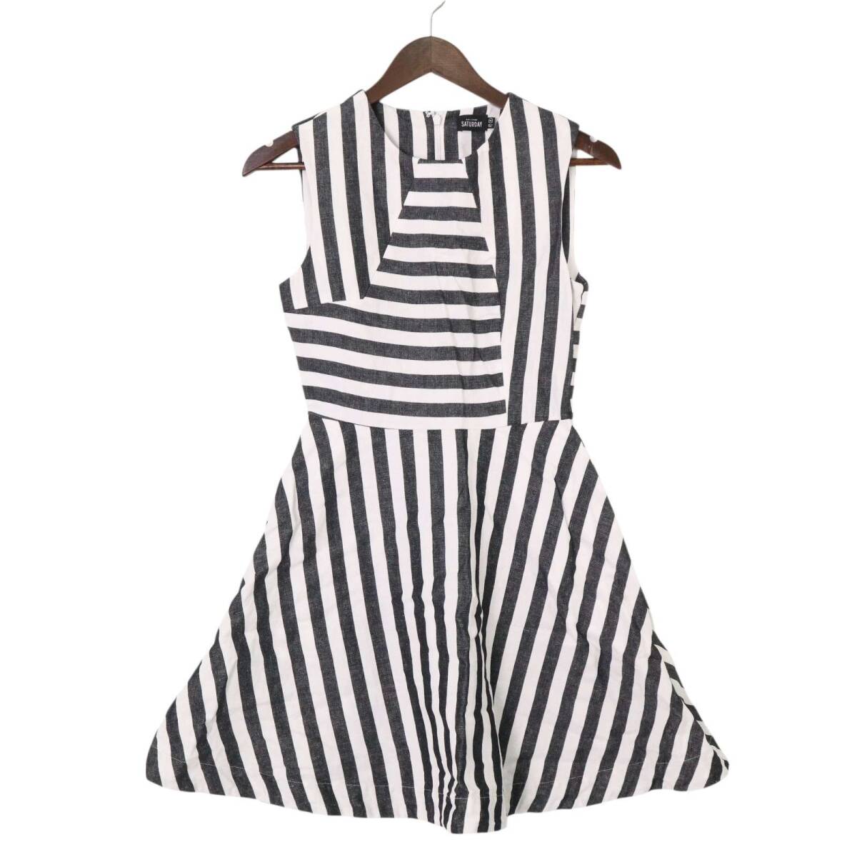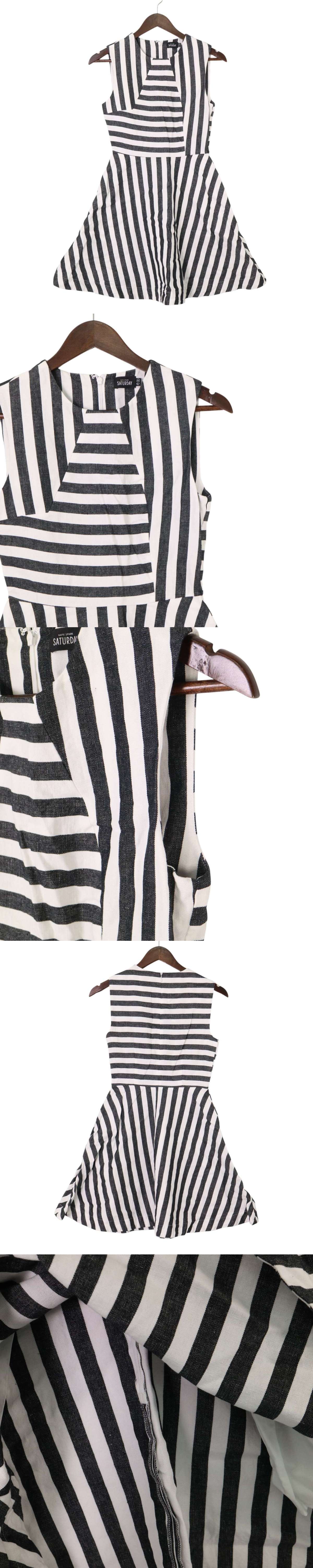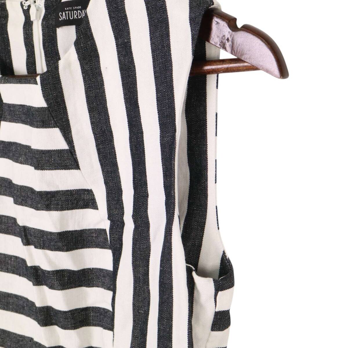 Kate Spade ケイトスペード 春夏★ 麻 ストライプ ノースリーブ フィット&フレア ワンピース Sz.00 レディース