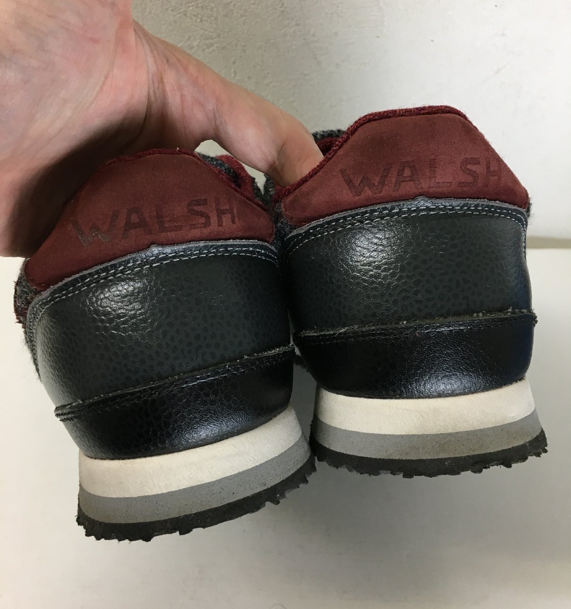 ◆ ◆WALSH × Harris tweede ウォルシュ ハリスツィード スニーカー エンジ×グレー サイズ9 27cm