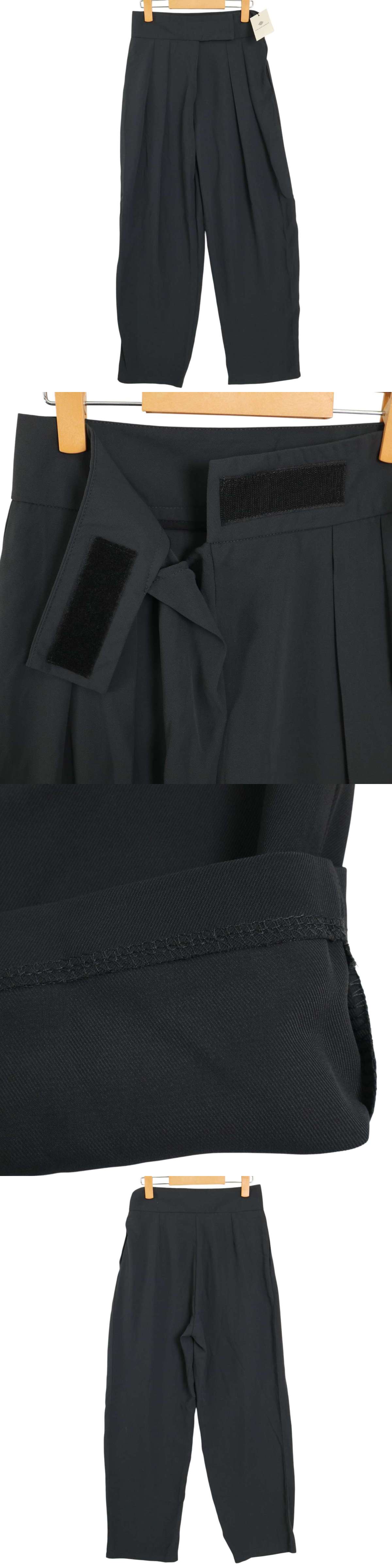未使用★ me+em select ミーアンドエムセレクト 春夏 スパンデックス ワイド タック パンツ Sz.L レディース 紺