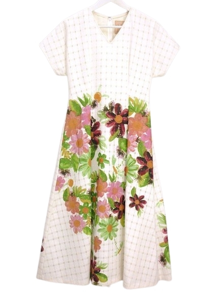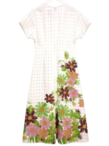 シビラ SYBILLA フラワー プリント ワンピース 透かしチェック M オフホワイト 白 レディース