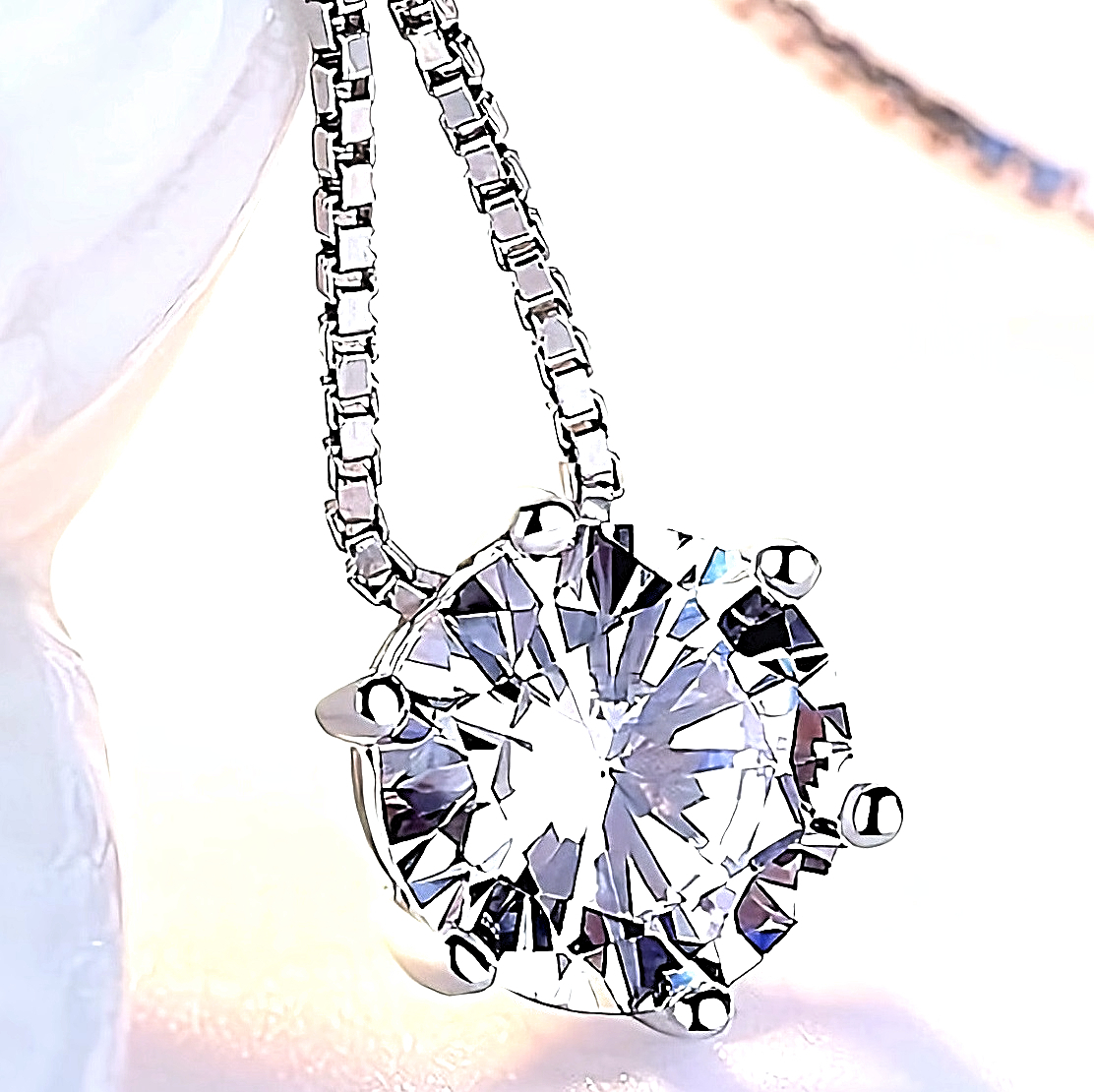 太陽の光で輝くダイヤモンドがファッションを選ばずきらりと胸元で輝きます。