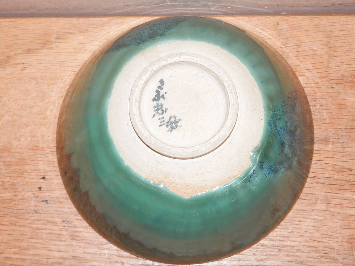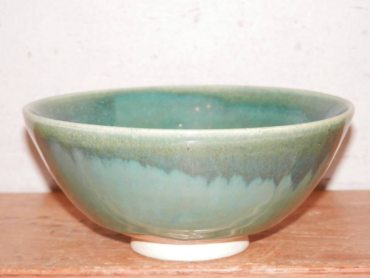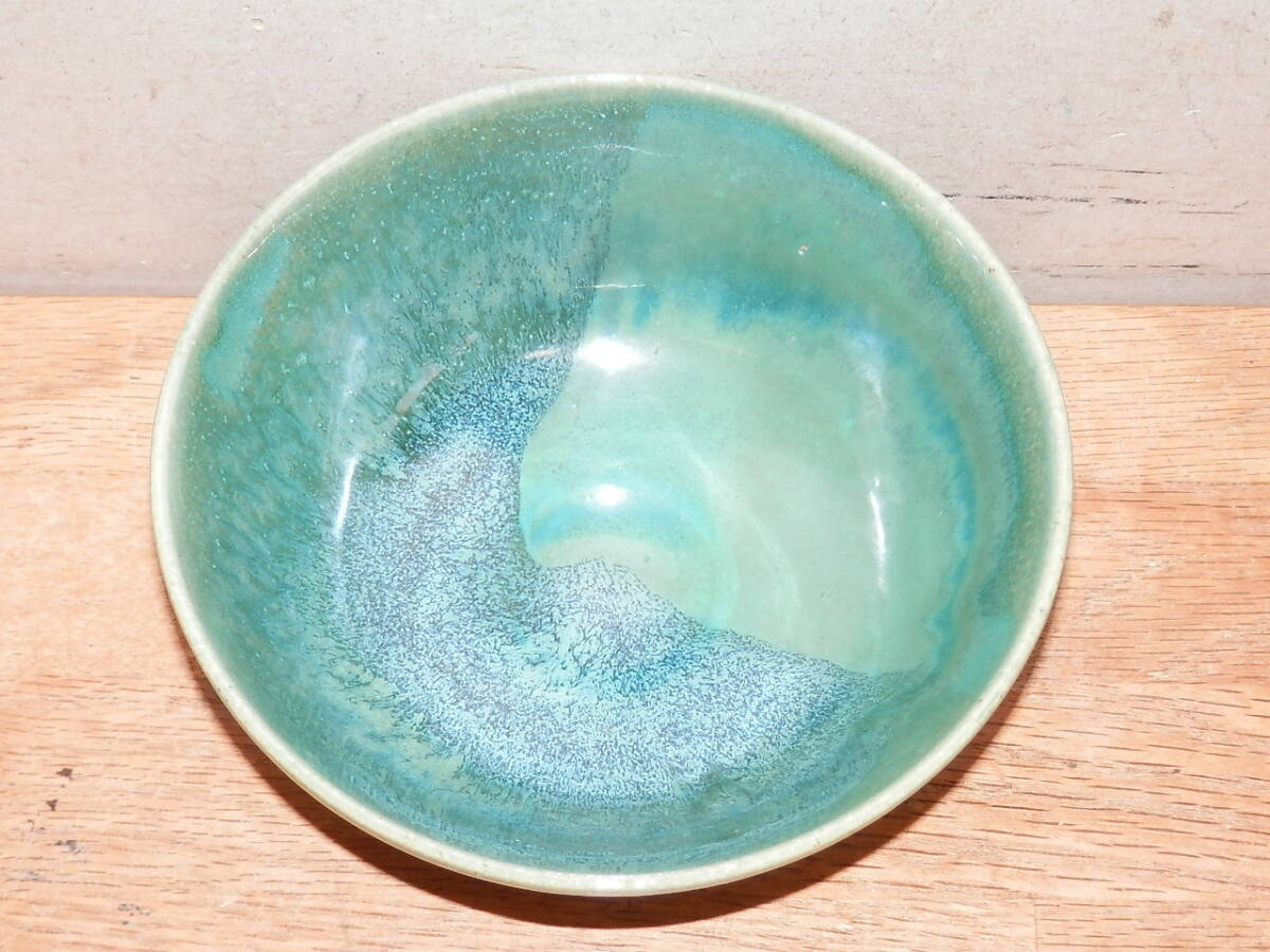 こぶ志焼 海鼠釉 茶碗 山岡三秋造 箱なし 中古 陶器 茶道具 ご飯茶碗 青系