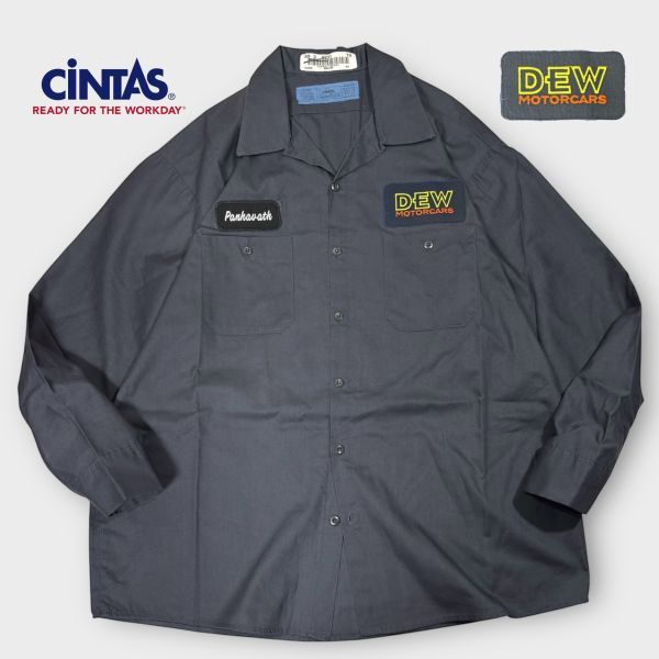 ★DEW MOTORCARSロゴワッペン★CINTAS 長袖ワークシャツ sizeXL アメリカ 古着 クリーニング プレス済み 2476