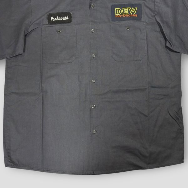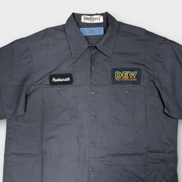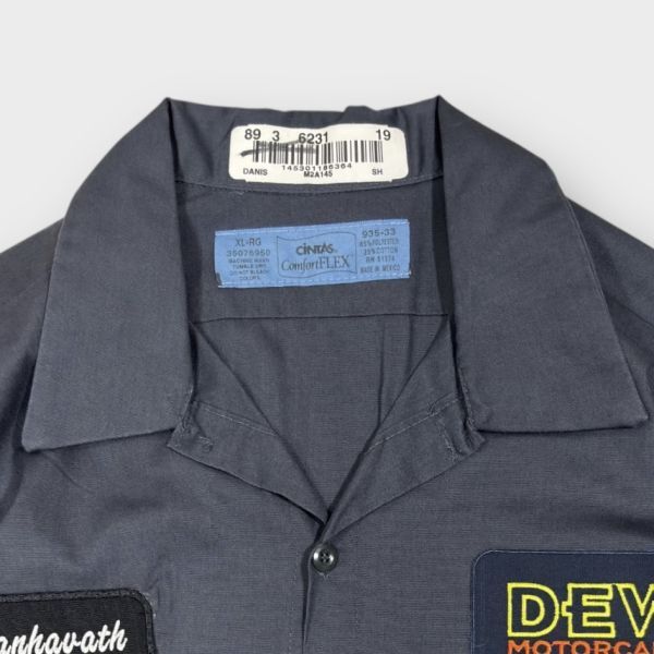 ★DEW MOTORCARSロゴワッペン★CINTAS 長袖ワークシャツ sizeXL アメリカ 古着 クリーニング プレス済み 2476
