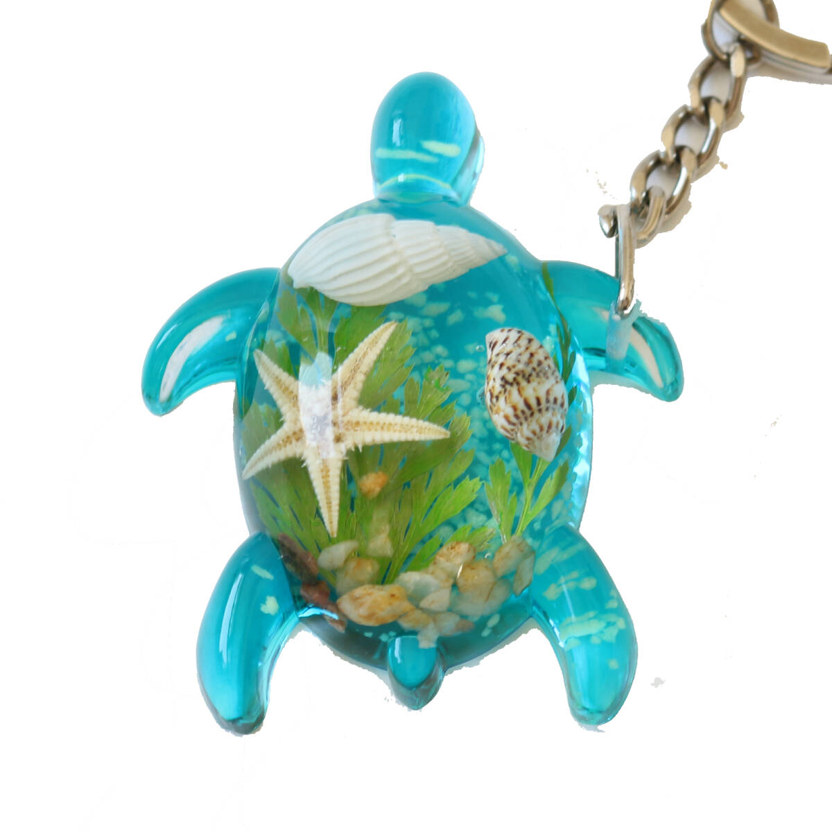 ※注意!本商品はハンドメイドのため、キーホルダー中の巻き貝、貝、小石、海草などの色・形状・サイズが不揃いです。ご了承の上ご購入お願いします。