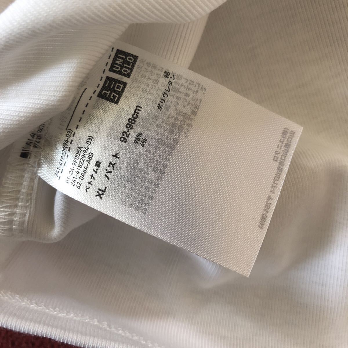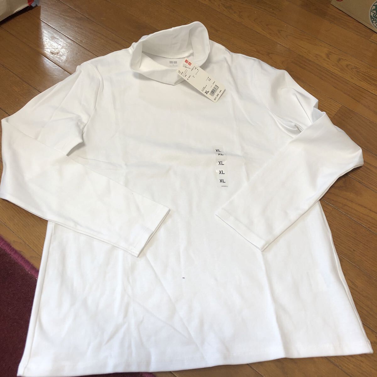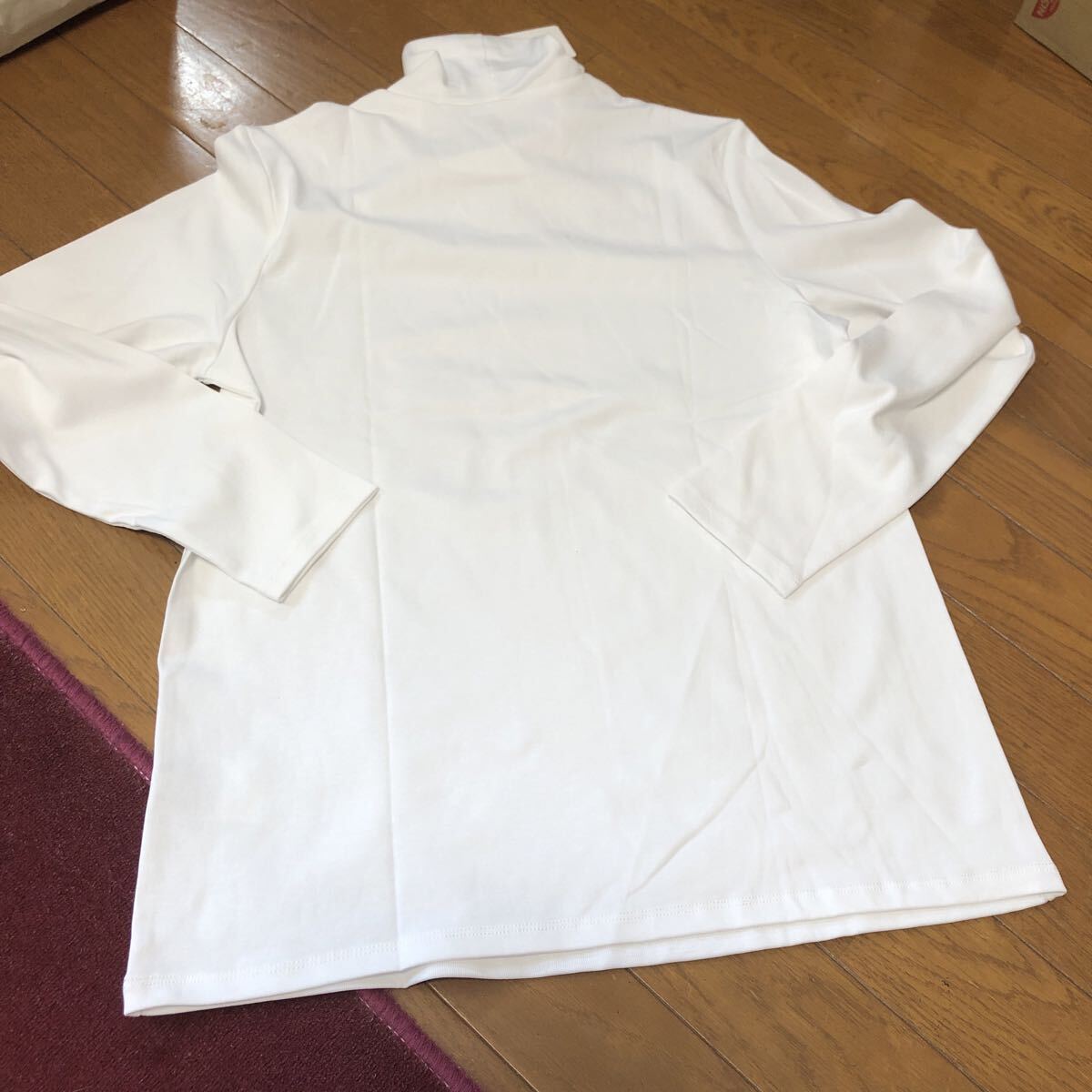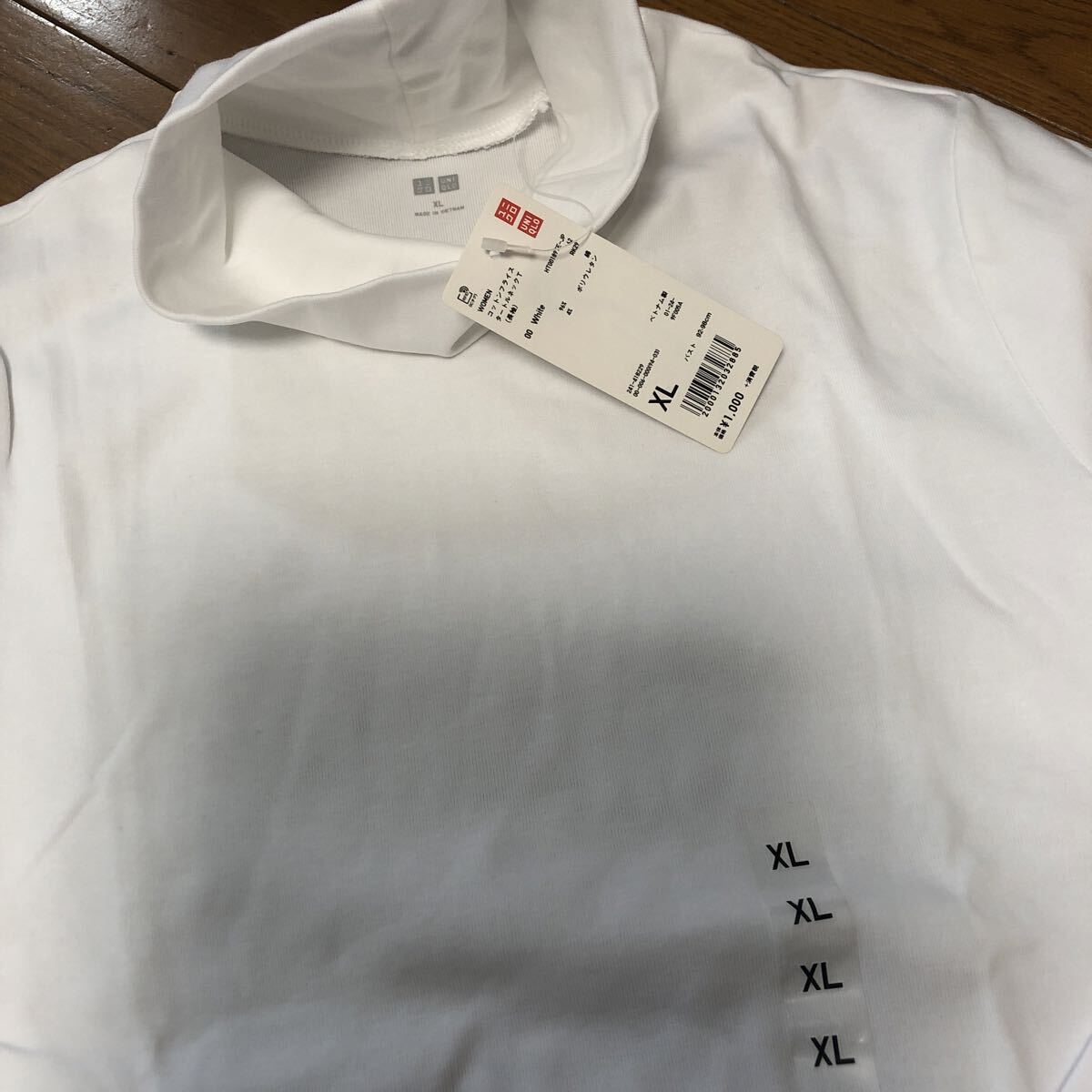 新品ユニクロUNIQLO ハイネックT長袖 XL 白色 綿96% レーヨン ポリウレタン6% 未使用 送料230円