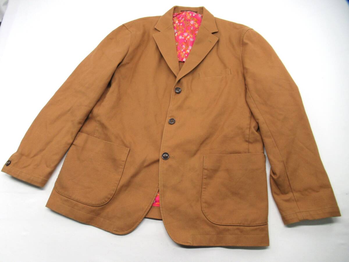 【送900円】858 Karl Hermut カールヘルム メンズ コットンジャケット テーラード ブラウン アウター 綿100% 裏地花柄 L