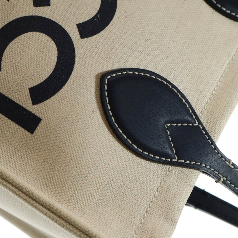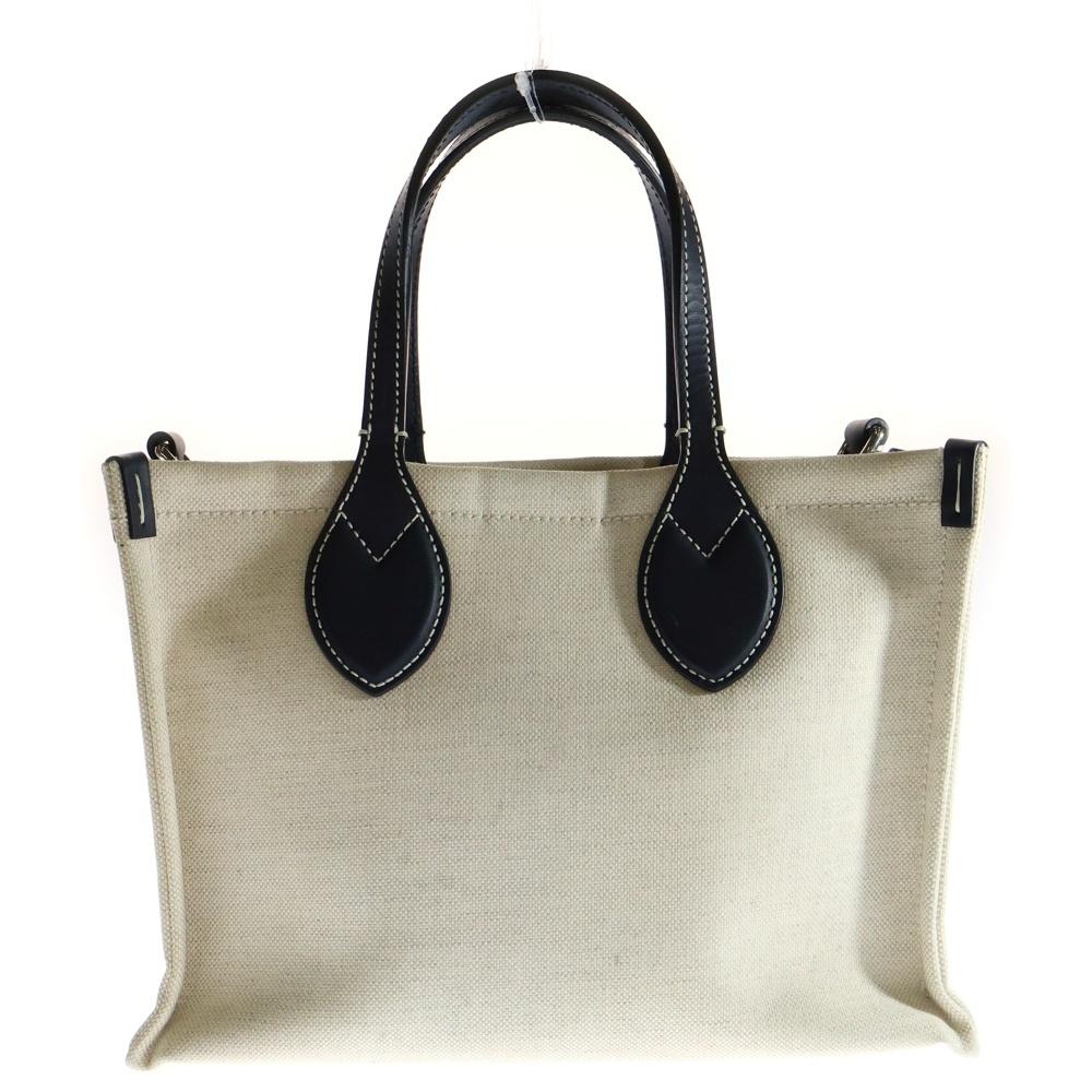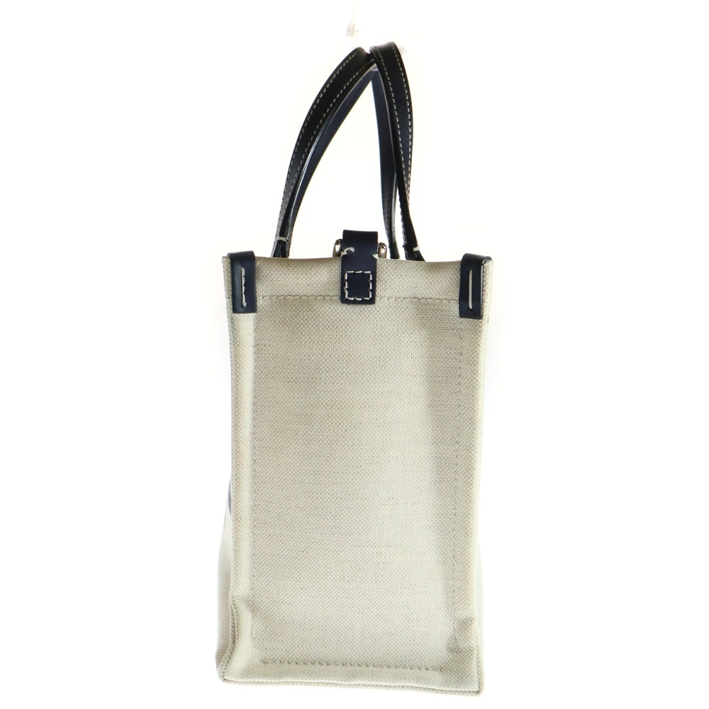 品名プリント 2WAYバッグ ショルダーバッグ ハンドバッグ ミニトートバッグ ネイビー×アイボリー キャンバス×レザー シルバー金具 772144